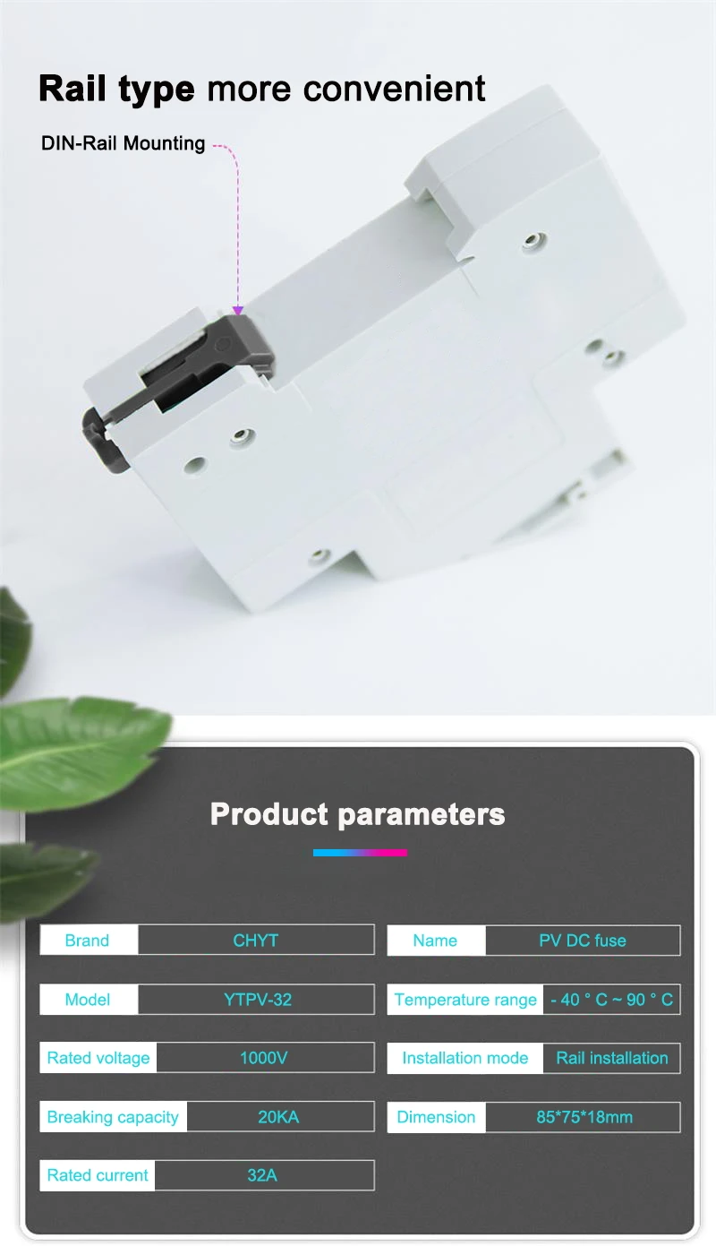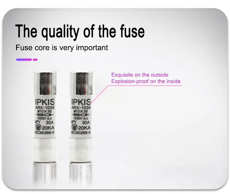 Ряд предохранителей в посылка вке 10x38 мм, специально разработанный для защиты и изоляции фотоэлектрических струн.