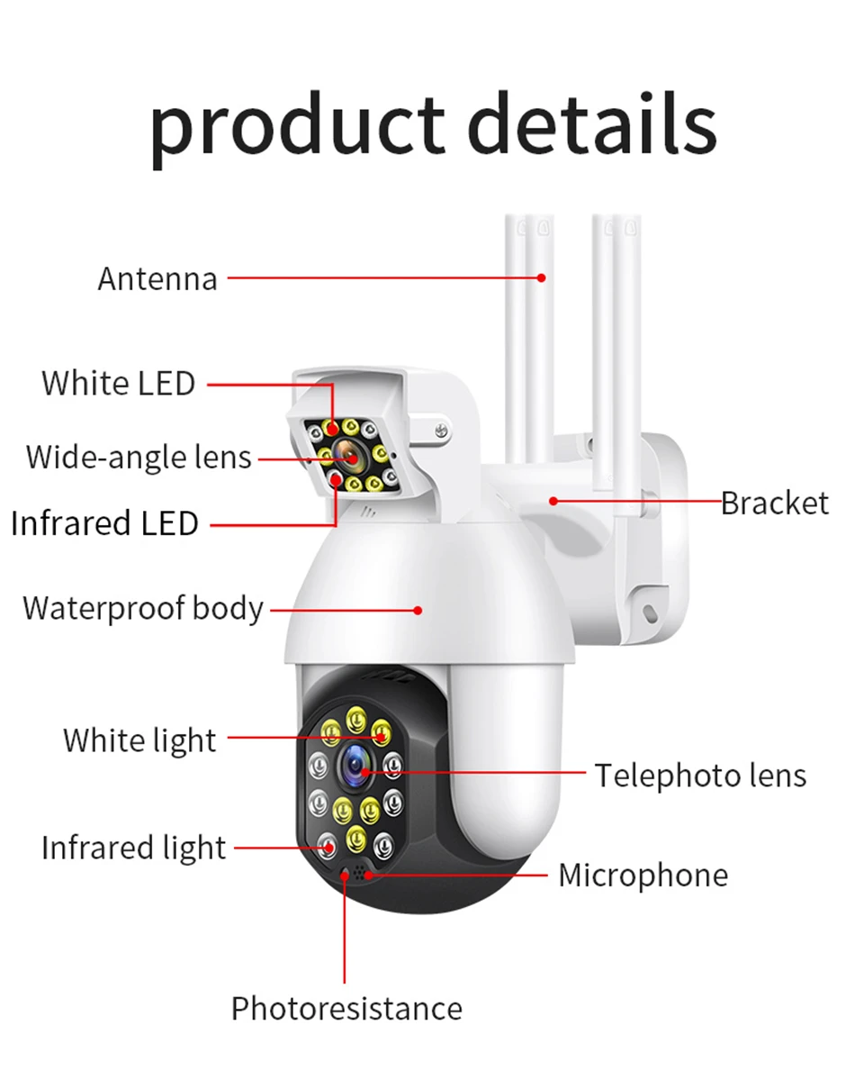 * PTZ: вращается на 320 градусов влево и вправо и вращается на 90 градусов по вертикали;