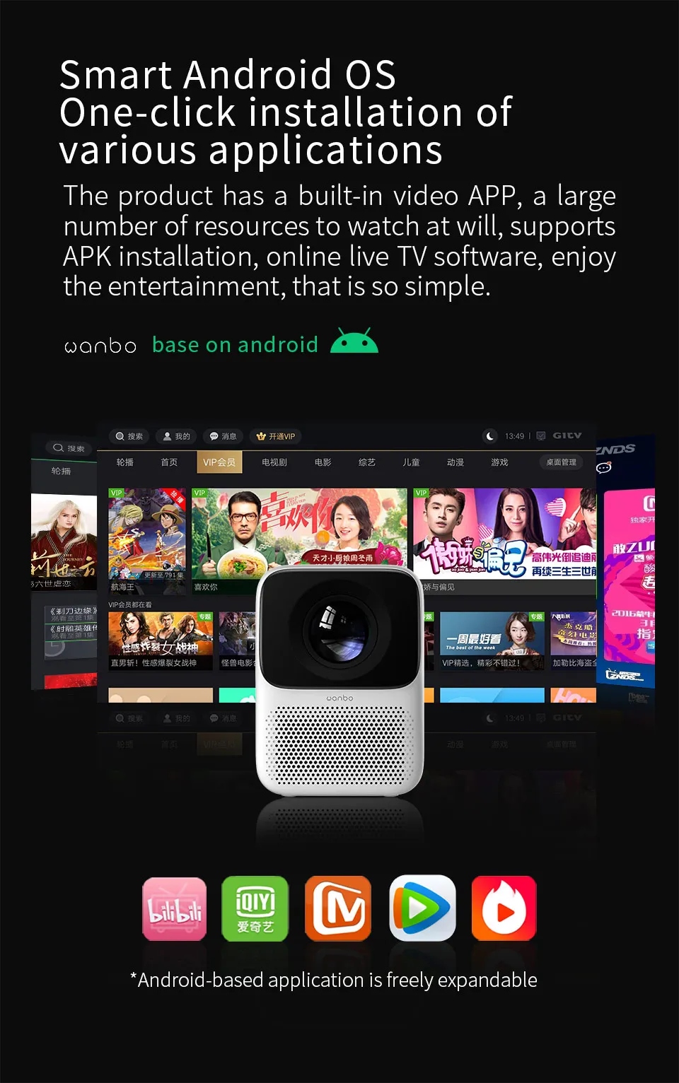 О: этот раздел поддерживает только Локальное воспроизведение u-диска. Не поддерживает функцию сети Wi-Fi. Если вам нужна поддержка функции подключения Wi-Fi, мы рекомендуем приобрести проектор Wanbo T2Pro или использовать Android smart box.
