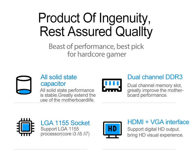 ➊ Из-за различных партий продукции могут быть некоторые различия между изображениями, которые вы видели, и продуктом, который вы получите, например, коробка, цвет DIMM слотов, SATA портов, PCI или PCI-E слоты и т. Д., которые могут быть изменены без предварительного уведомления. Одна вещь точно, Мы никогда не поставим под вопрос качество нашей продукции.