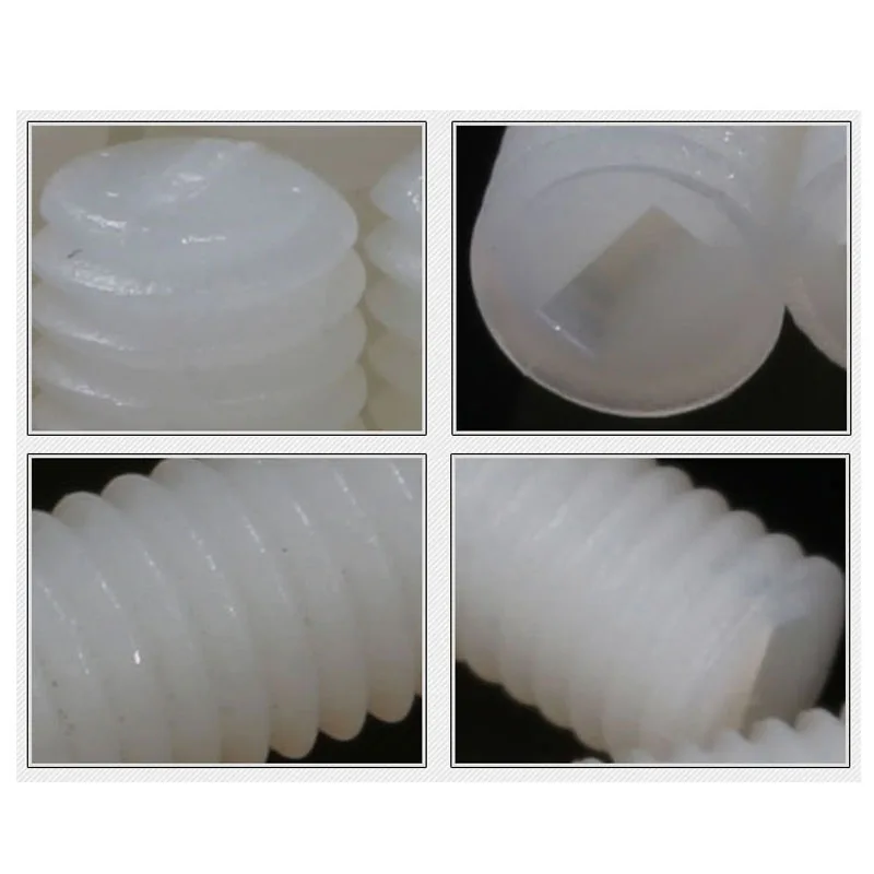 Наименование: винты с плоским наконечником Материал: Nylon66/пластик Огнестойкость: 94V-2 Рабочая температура: - 20 ℃ ~ + 120 ℃ Спецификация: M3-M12, например: M3 означает диаметр резьбы = 3 мм Длина: 4 мм-50 мм Посылка включает в себя: 5/ 10/ 20/60 штук × по вашему выбору Легкие и непроводящие, эти метрические винты изготовлены из нейлона. Плоский наконечник плотно держится на плоских поверхностях, не повреждая их даже при частом регулировании.