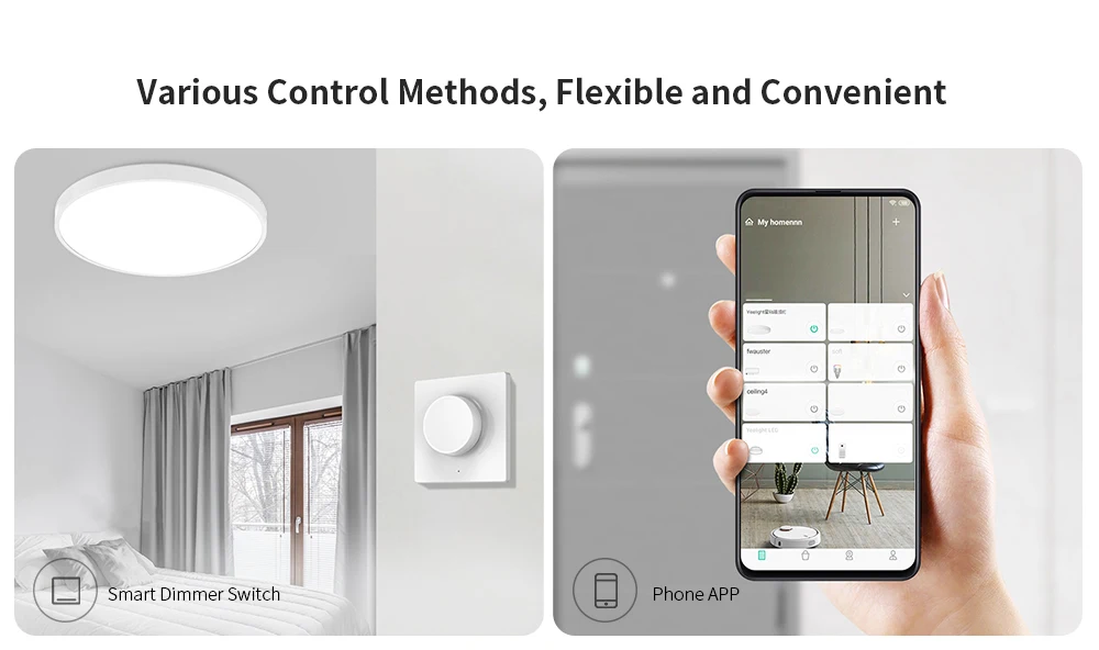 Интеллектуальное Взаимодействие: управление через приложение, дистанционное управление, умный переключатель света, голосовое управление