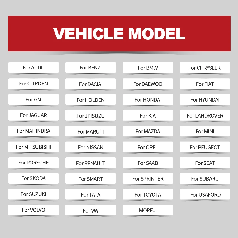 Для AUDI, для BENZ, для BMW, для CHRYSLER, для CITROEN, для DACIA, для DAEWOO, для FIAT, для GM, для HOLDEN, для HONDA, для HYUNDAI, для JAGUAR, для JPISUZU, для KIA, для LANDROVER, для MAHINDRA, для MARUTI, для MAZDA, для MINI, Для MITSUBISHI, для NISSAN, для OPEL, для PEUGEOT, для PORSCHE, для RENAULT, для SAAB, для SEAT, для SKODA, для SMART, для SPRINTER, для SUBARU, для SUZUKI, для TATA, для TOYOTA, для USAFORD, для VOLVO, для VW...