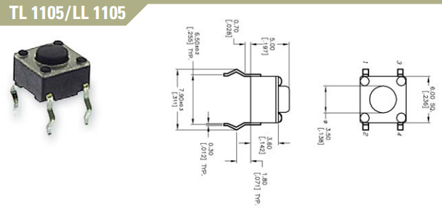 Оригинальный Американский тактовый переключатель TL1105LF160Q 6*6*17, встроенная 4-контактная кнопка, кнопка индукционной плиты микро-действия, сила кнопки 160 грамм, длительный срок службы, устойчивость к высоким температурам, одна упаковка из длинной ручки 750 шт. с подробной информацией и чертежом размеров
