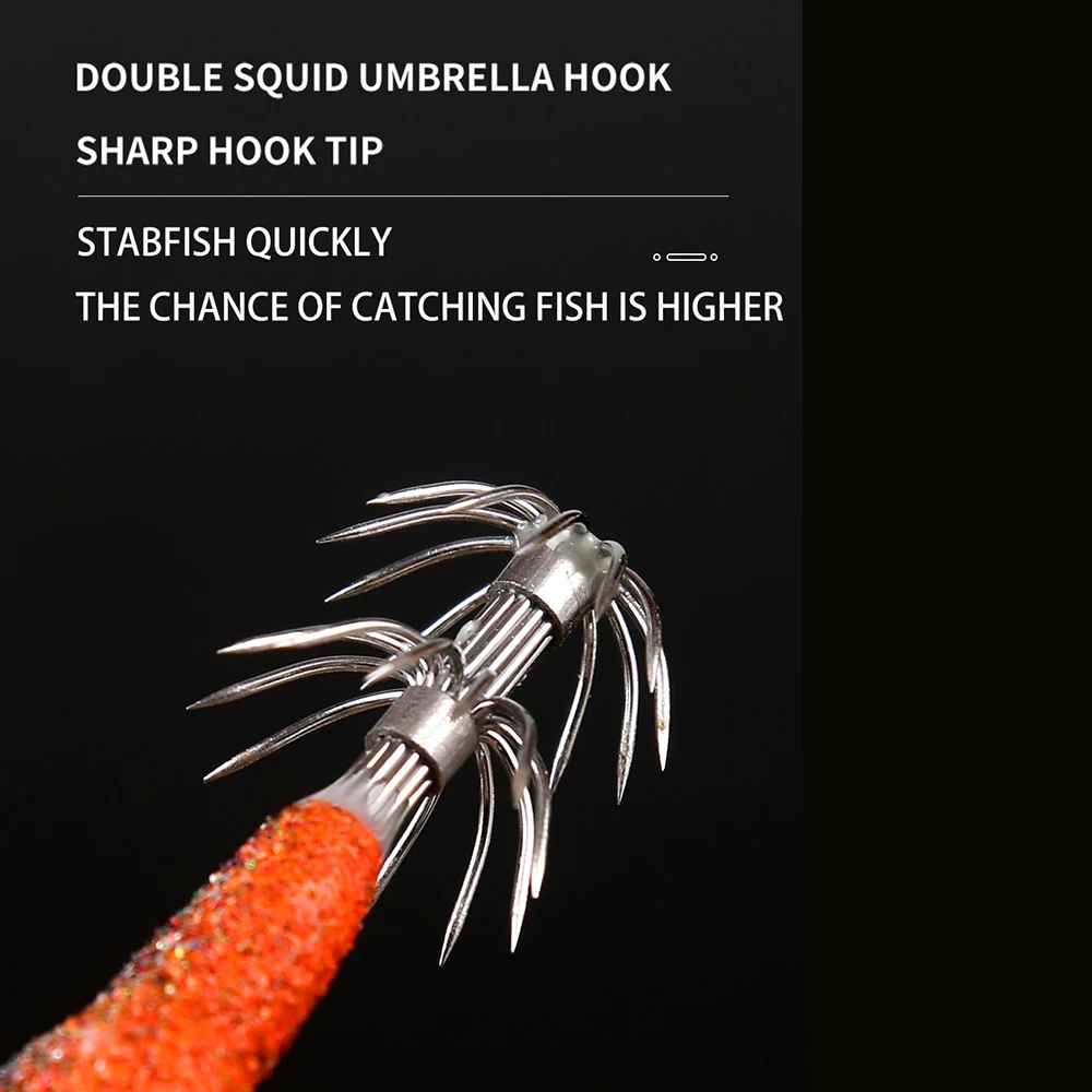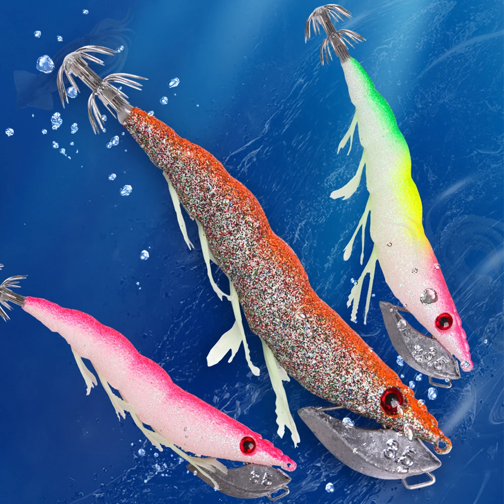 1 шт., 90 мм/21 г, светящийся рыболовный крючок для кальмаров, деревянные креветки, приманка осьминога, деревянные креветки, приманки, искусственные морские рыболовные снасти