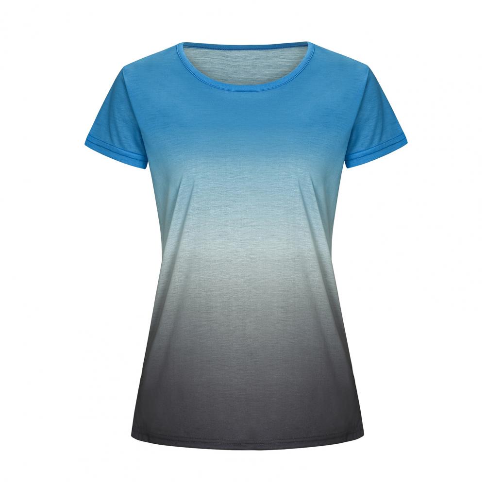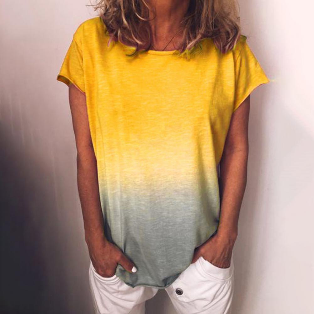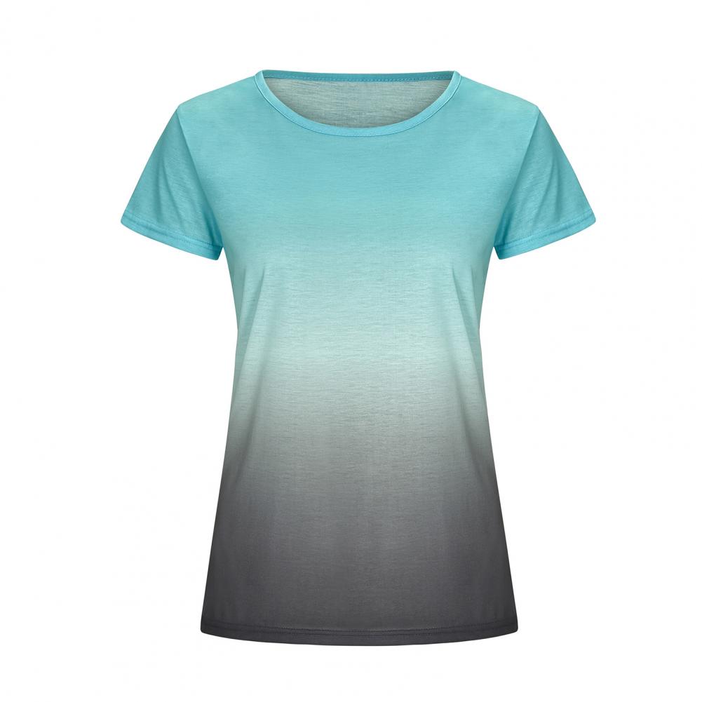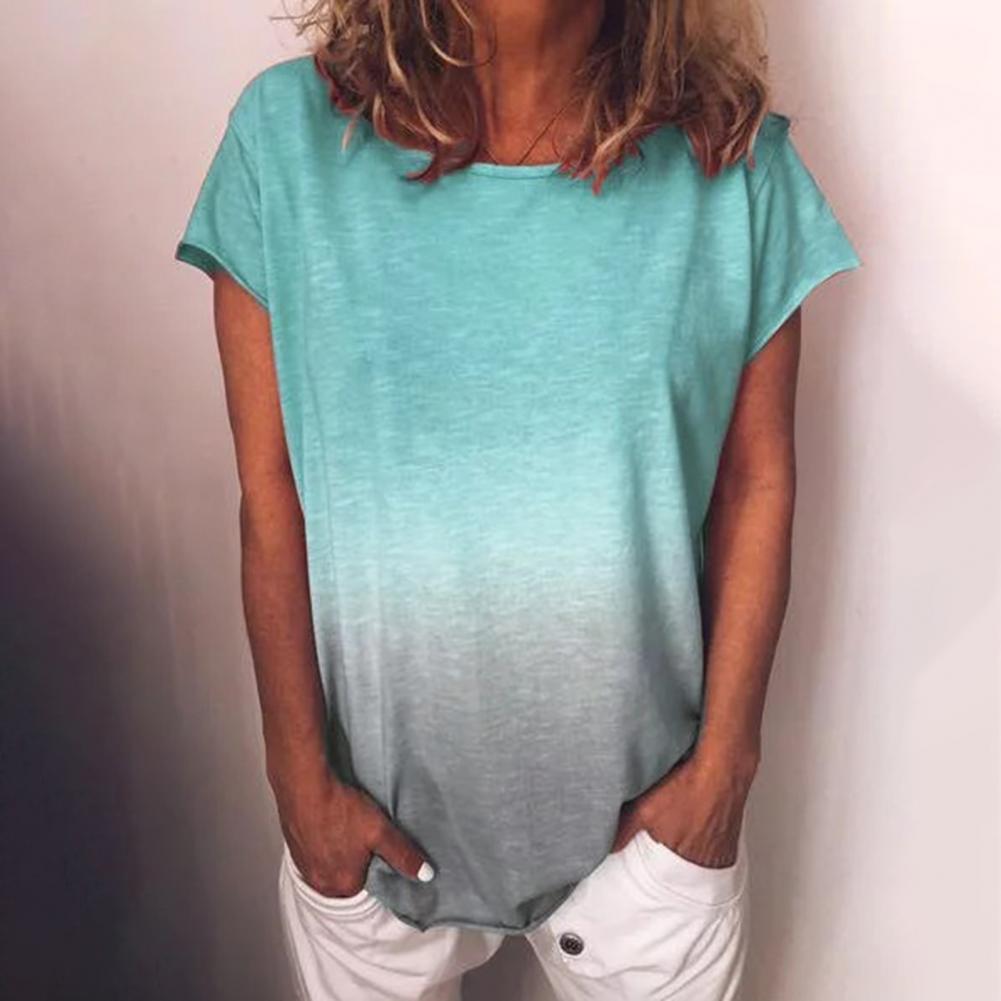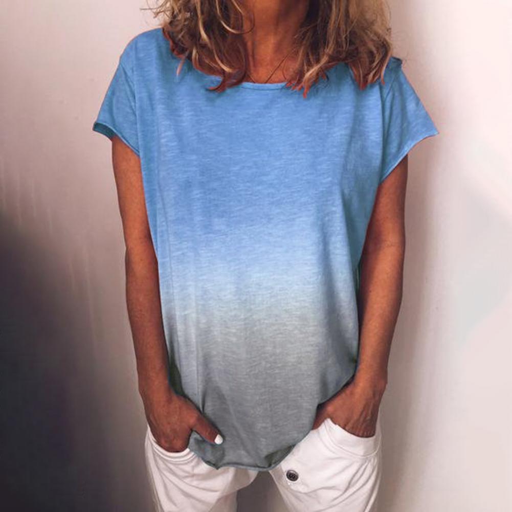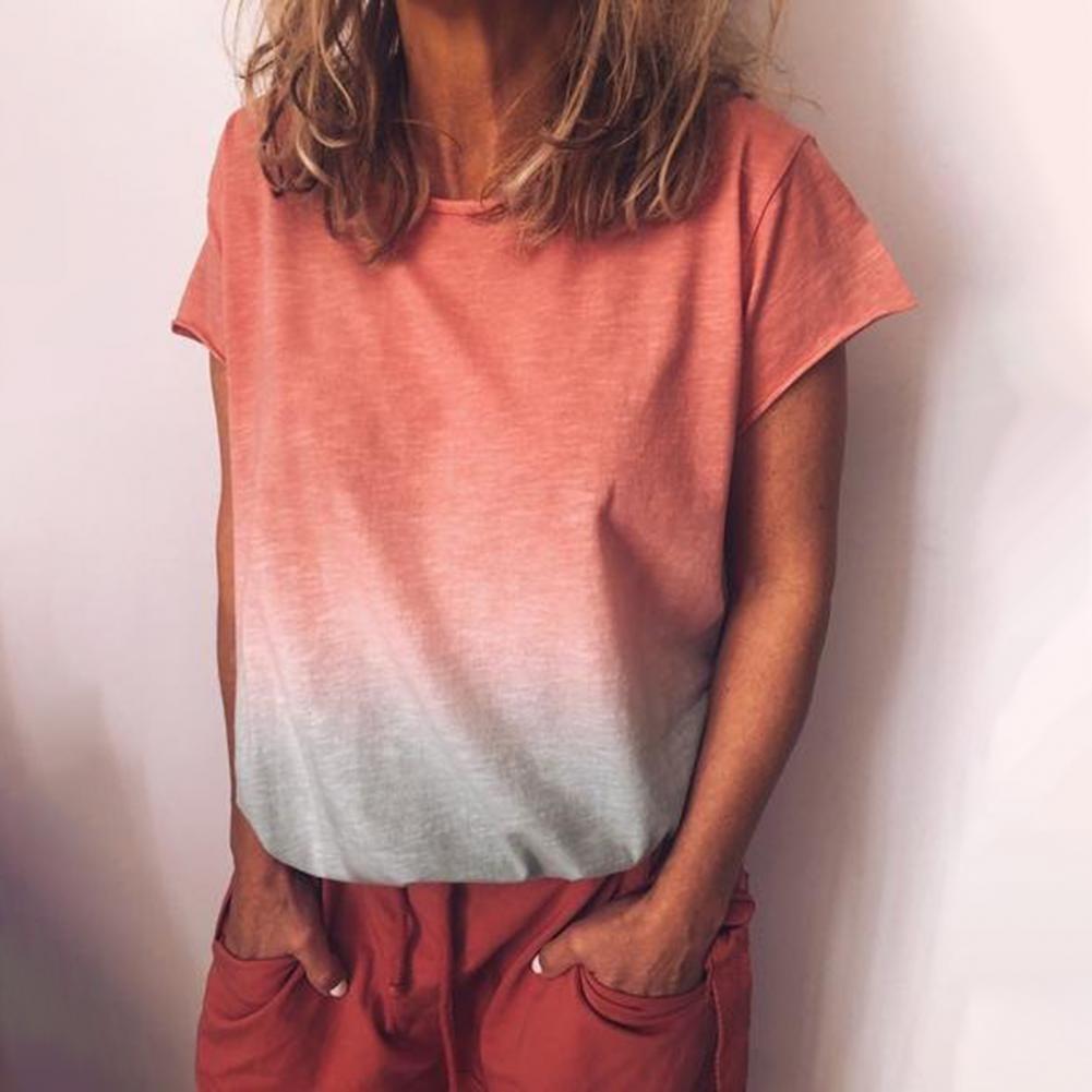 Футболку можно сочетать с брюками или юбками. Дизайн градиентного цвета делает его полным моды.