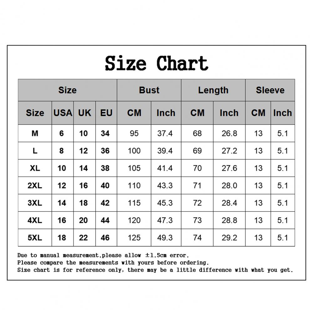 [Наш Размер 5XL] Обхват груди: 125 см/49,2 дюйма, рукав: 13 см/5,1 дюйма, длина: 74 см/29,1 дюйма (прибл.)