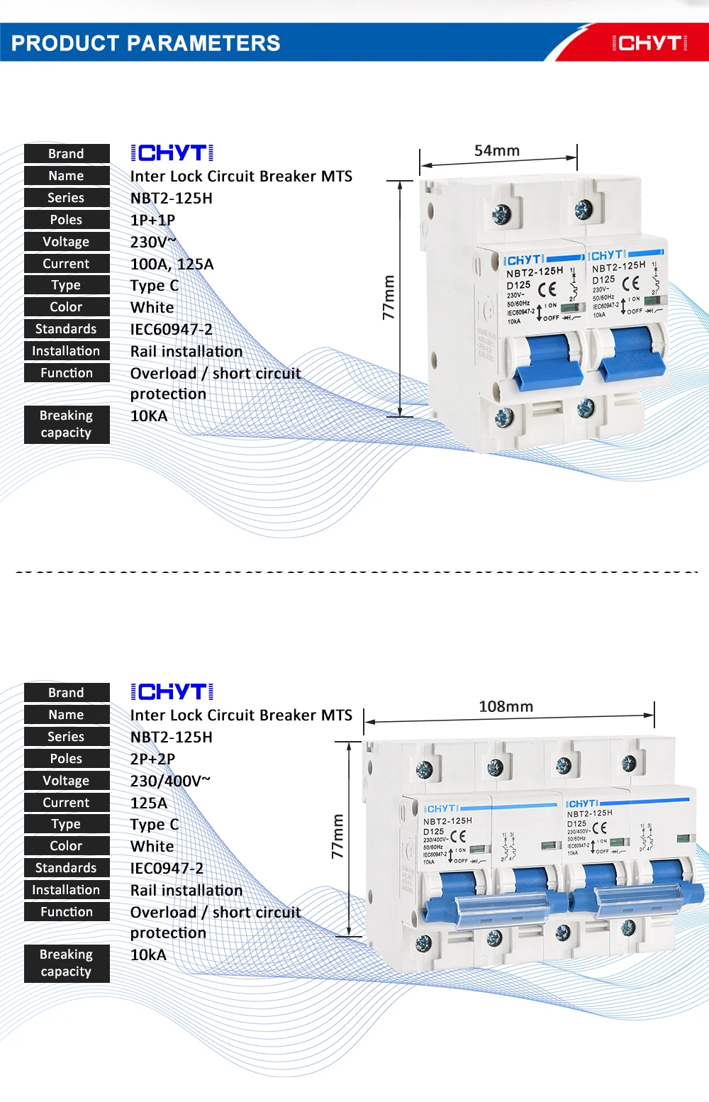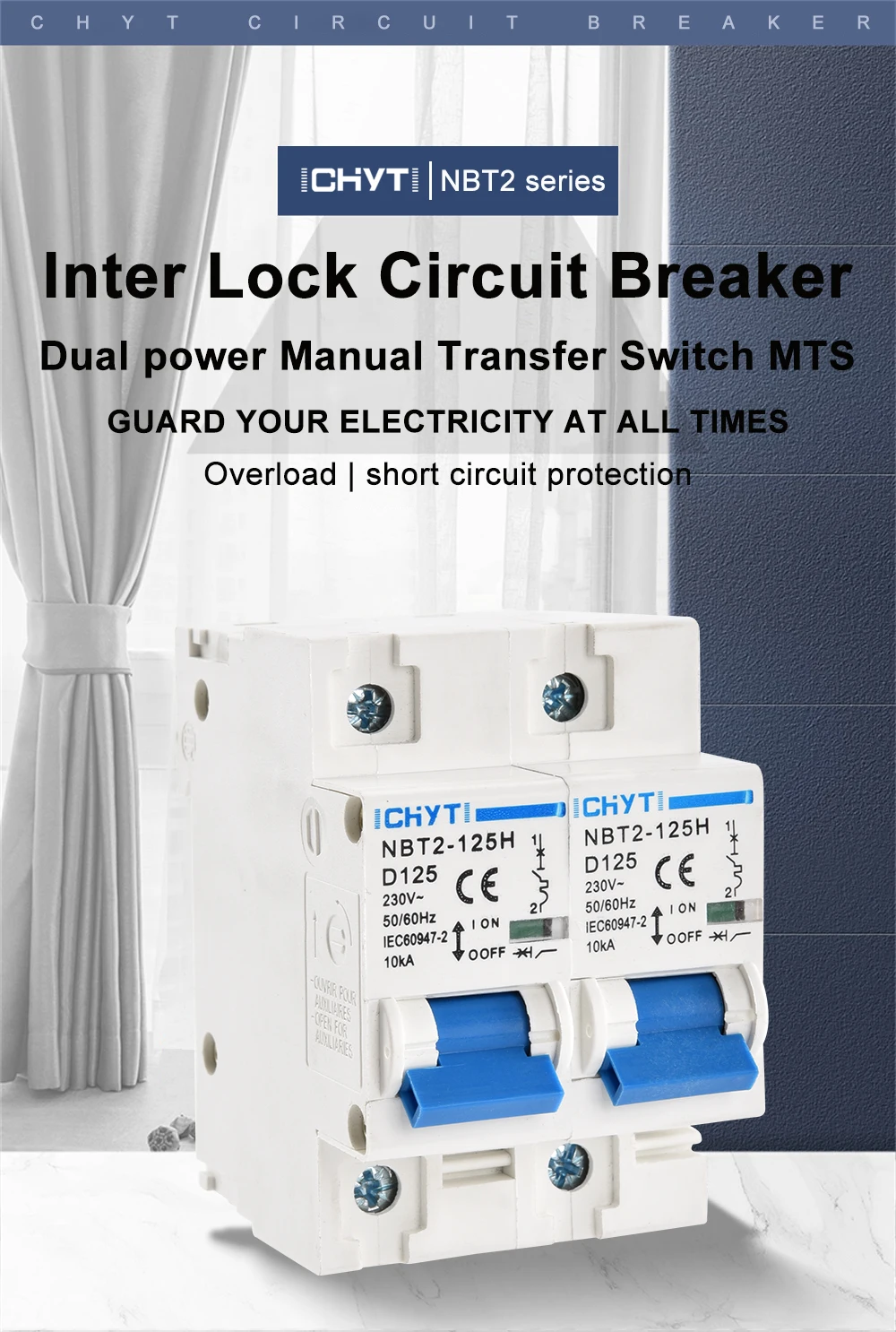 Автоматический выключатель блокировки NBT2-125H можно использовать в качестве миниатюрного переключателя двойной мощности с ручным управлением. В случае закрытия одного бокового выключателя другая сторона выключателя может быть только отключена, а функции защиты общего источника питания (сети) и переключения резервной линии питания могут быть реализованы.
