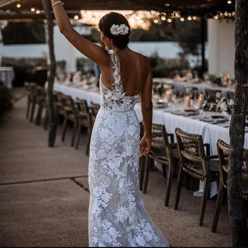 One Shoulder Beach Wedding Dresses Mermaid Flower Pattern Appliques Lace Bridal Gowns 2021 Vintage Country Style Robe De Mariee