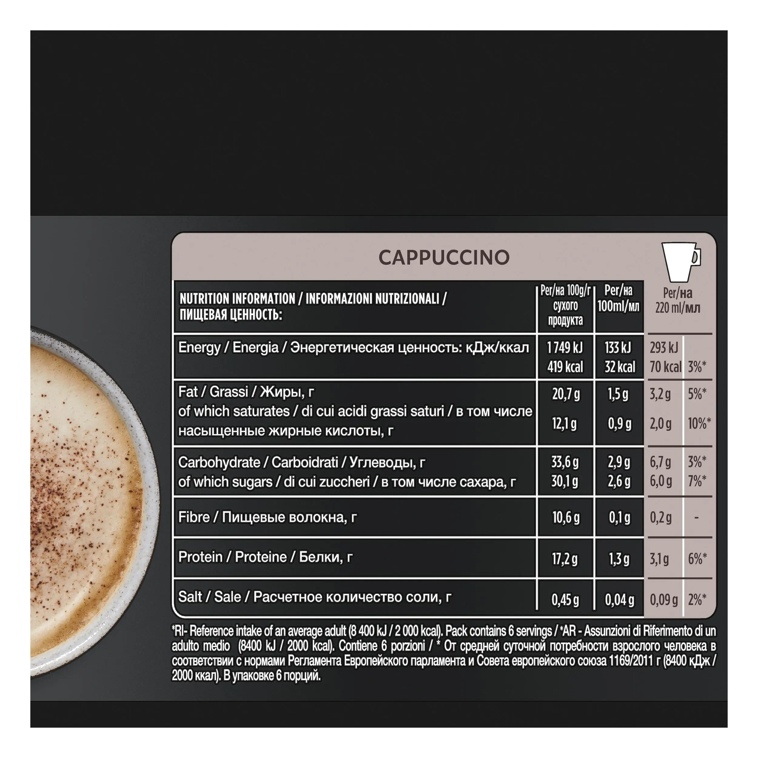 Насладитесь классическим рецептом легендарного Cappuccino. Представляем Starbucks Cappuccino для системы Nescafé Dolce Gusto. Вдохновение от любимого гостями кофеен Cappuccino от Starbucks - изысканный, сбалансированный и такой знакомый вкус кофе, приготовленного дома в кофемашине Nescafé Dolce Gusto.