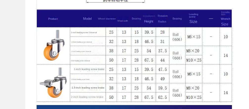 1/1.5/2 дюймовый нейлоновый шарнир колесико для покупок тележки M6/M8/M10 Резьбовые болты ролики офисное кресло на колесах