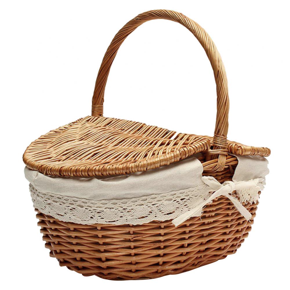 Плетеная ивовая тканая Корзина для пикника, корзина для покупок с крышкой и ручкой, корзина для пикника и пикника