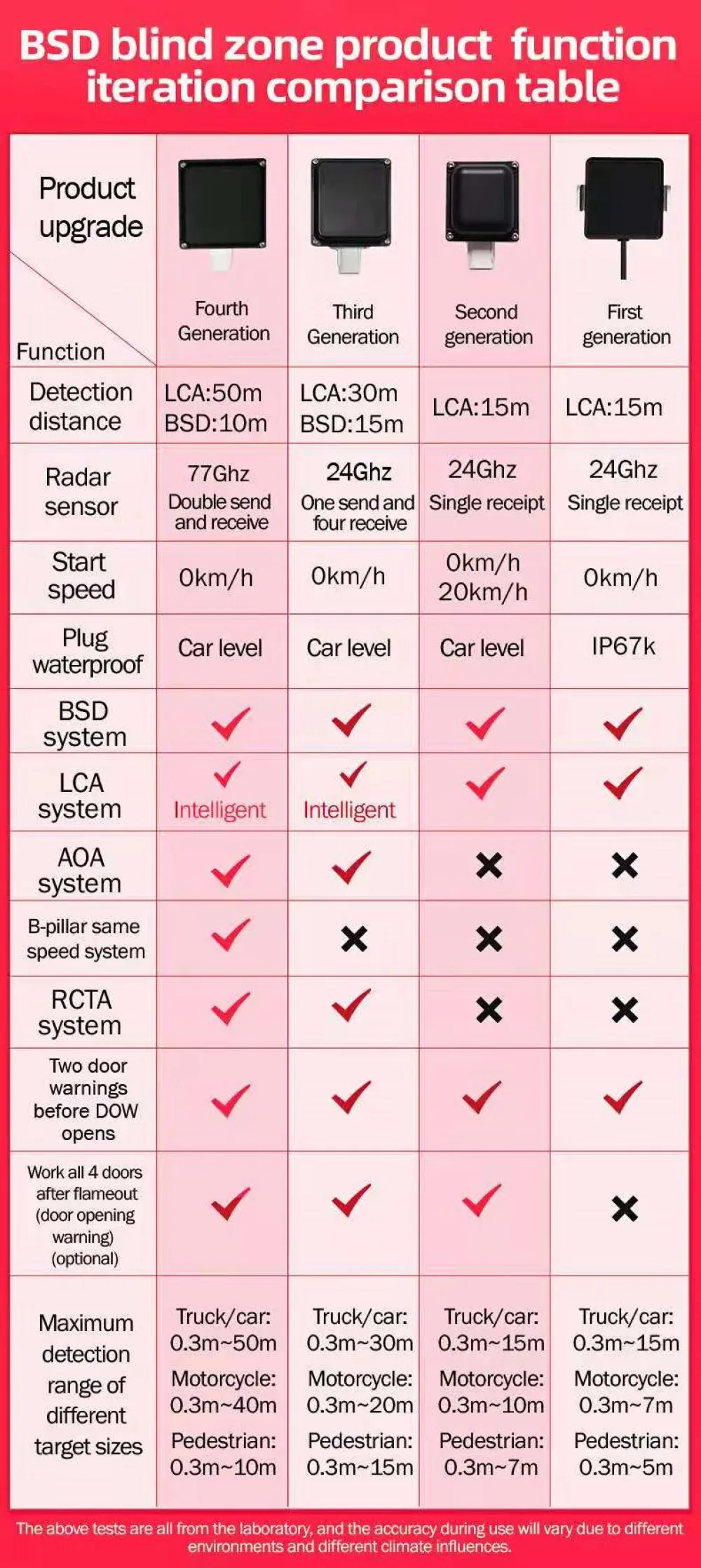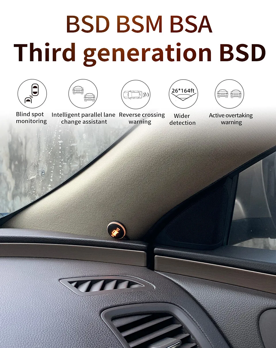 Когда BSM BSD миллиметровый волновой радар в вашем автомобиле светодиодный, пока есть движущиеся объекты в задней части транспортного средства, светодиодный свет будет мигать, независимо от того, в течение дня, ночью или даже в снегу. Звуковой сигнал напоминает водителю быть осторожным при смене полос, чтобы избежать возможности бокового столкновения.
