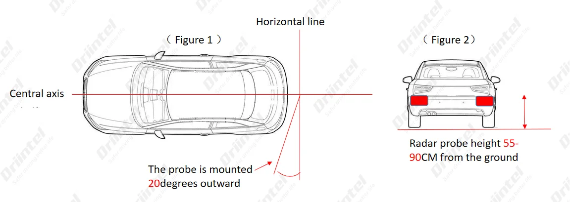 Установка радара угол установки радара повлияет на расстояние обнаружения и эффект. Пожалуйста, установите его строго в соответствии с инструкциями.
