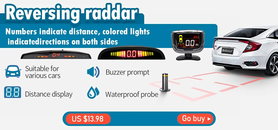 Обнаружение и дистанцию предупреждения: 7 м (по Горизонтали левые и правые) * 3,5 м (задняя часть автомобиля) в тех случаях, когда движущегося объекта входит в районах, светодиодный свет и звук будет напоминать.