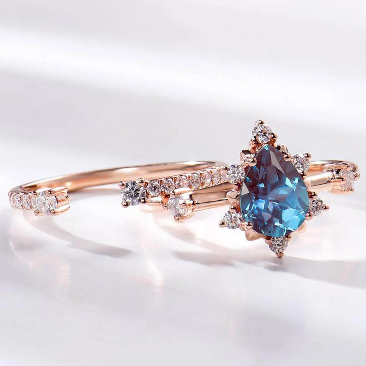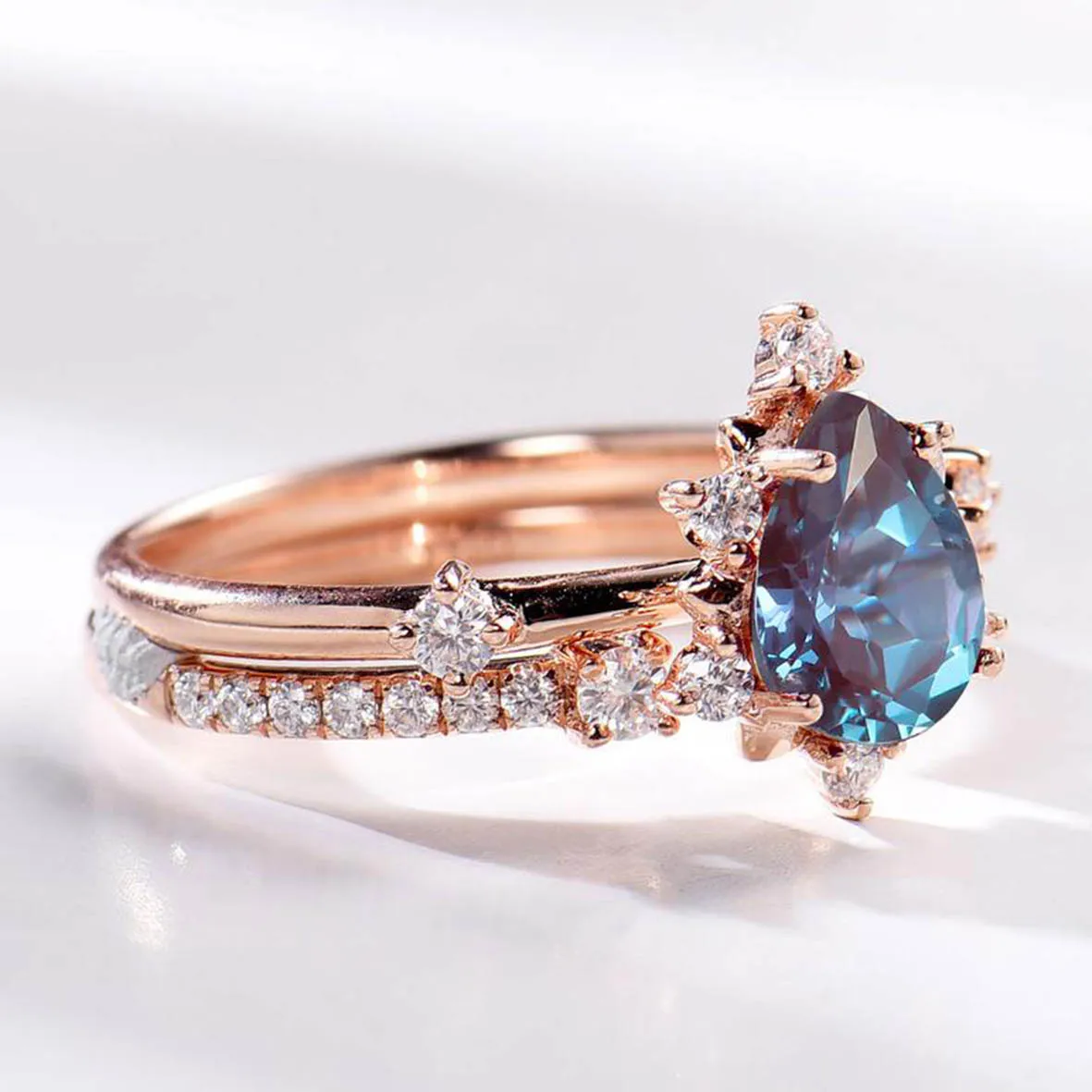 Hot Selling Solid 925 Sterling Silver CZ Dainty Jewelry Alexandrite Ring Set Alexandrite Wedding Engagement Rings For Gift
