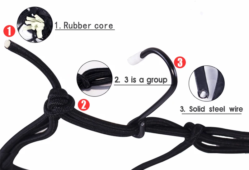 В этом изделии используется мягкий трикотаж в качестве сырья. Он уникально спроектирован с эластичными шнурами, поэтому в нем можно хранить множество вещей, таких как запасные шлемы, куртки, снаряжение и багаж. Он также имеет шесть крючков на паутине, которые не только быстро закрепляют предметы, но и уменьшают царапины, что позволяет сохранить нагрузку безопасной на скоростных дорогах и на плохих дорогах. С этим товаром ваша поездка будет более захватывающей, не беспокоясь о потере вещей