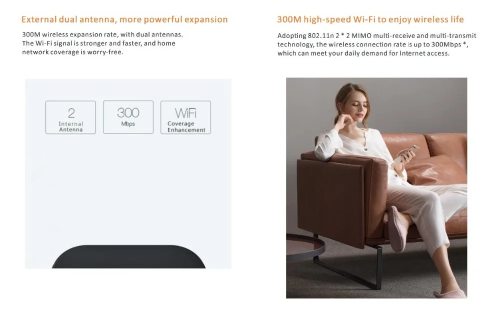 Двойные внутренние антенны: он может создавать широкое беспроводное покрытие, обеспечивая лучшую беспроводную производительность в проникающих стенах, позволяя вам наслаждаться беспроводной свободой в любом месте вокруг вашего дома