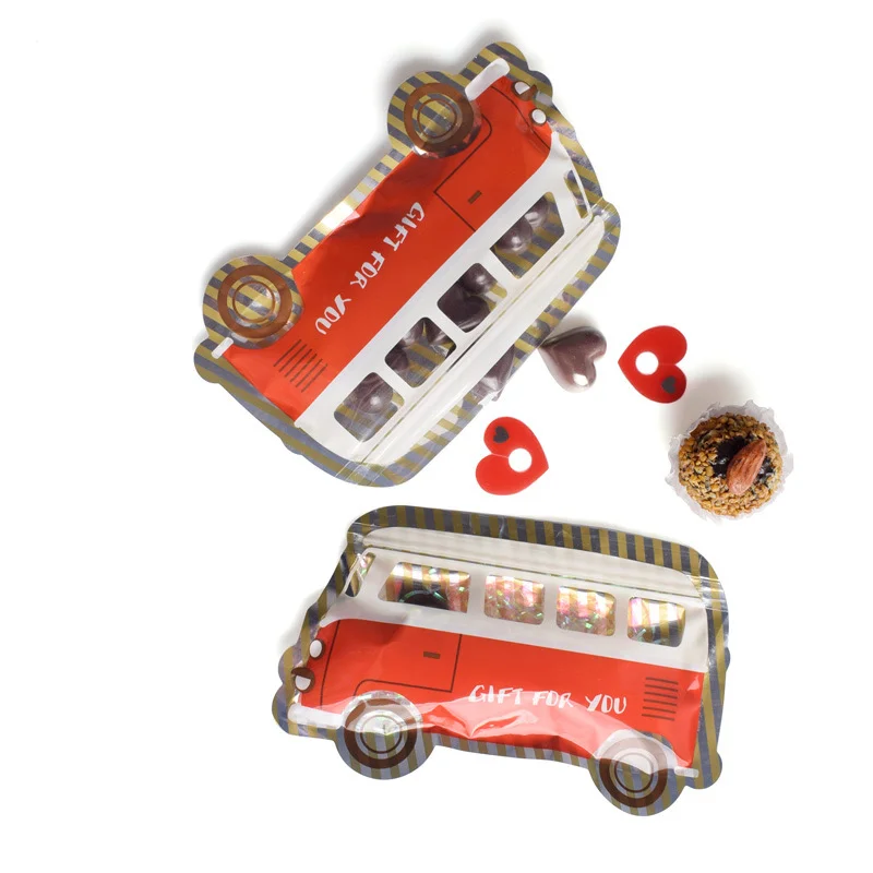 100 шт маленький красный автобус Самоуплотняющиеся Ziplock Сумки Для детей день рождения Сувениры Deco Печенье Шоколад сладкие конфеты мешок на молнии