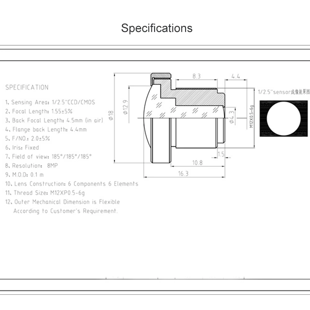 Witrue рыбий глаз CCTV объектив HD 8MP 1,55 мм 1/2.5 "F2.0 M12 крепление для панорамной камеры видеонаблюдения 185 градусов