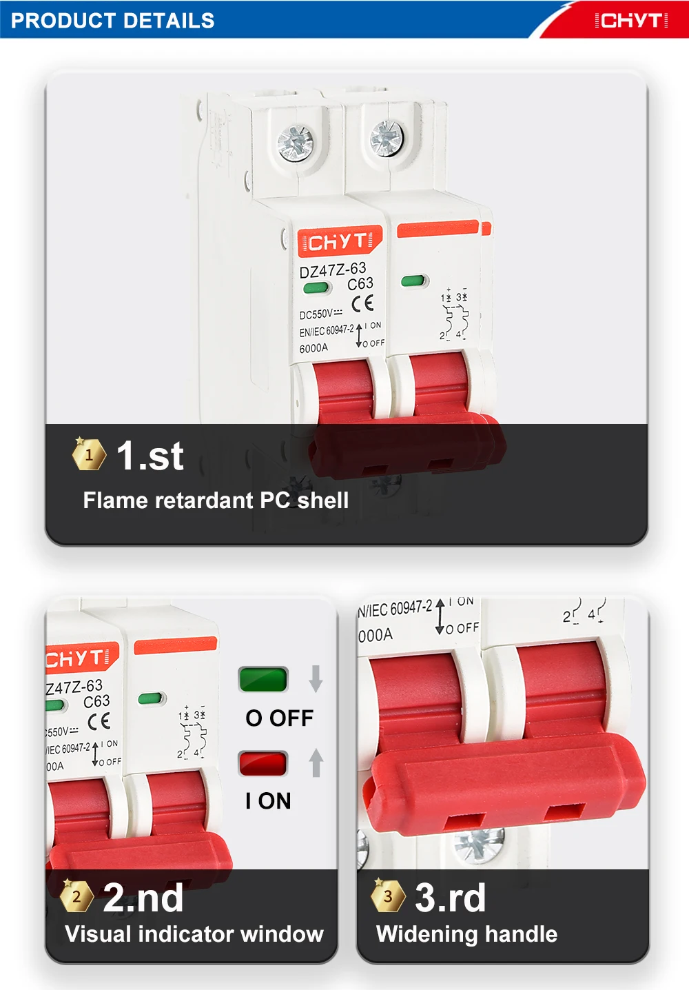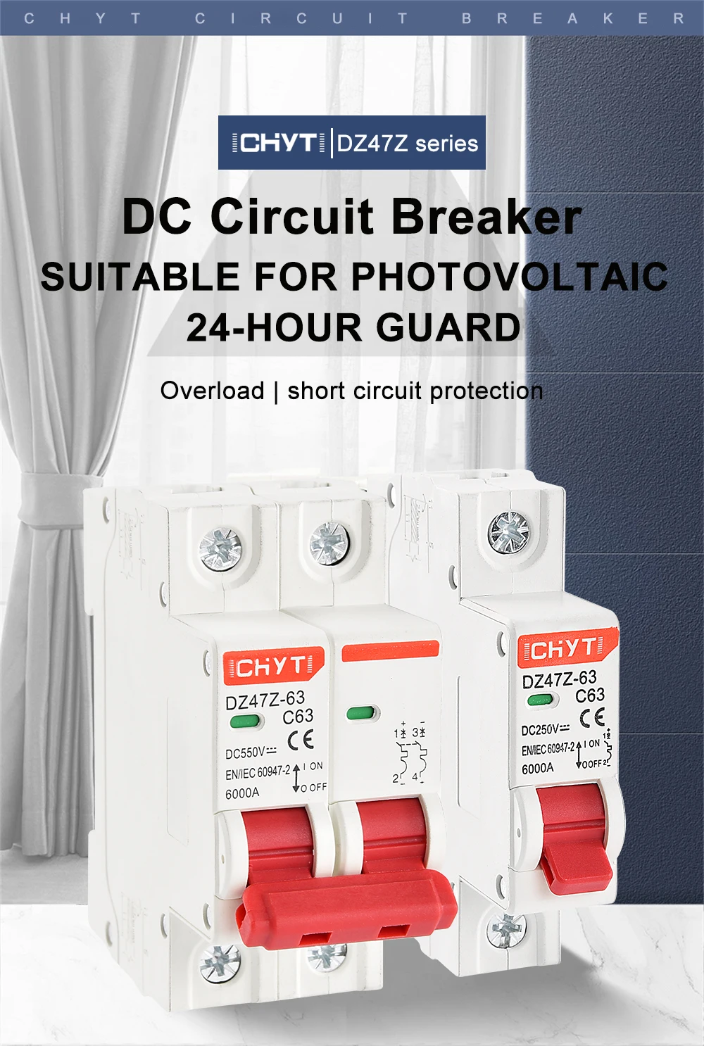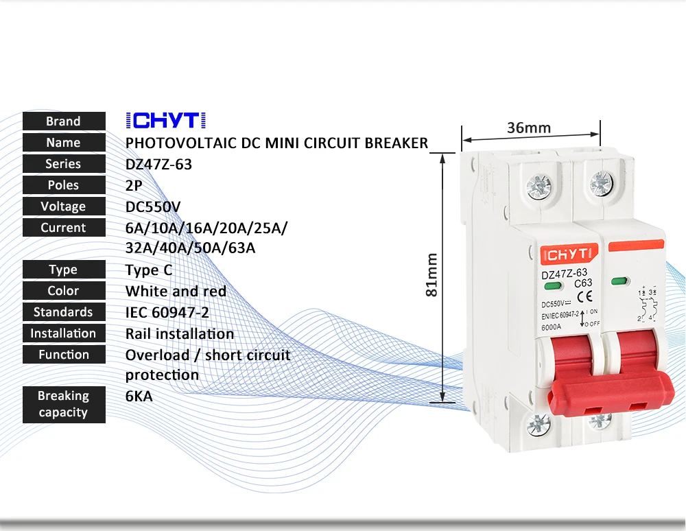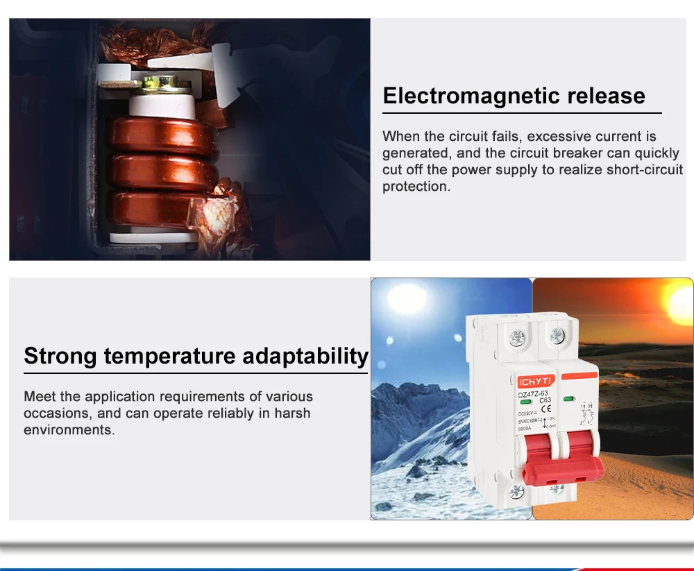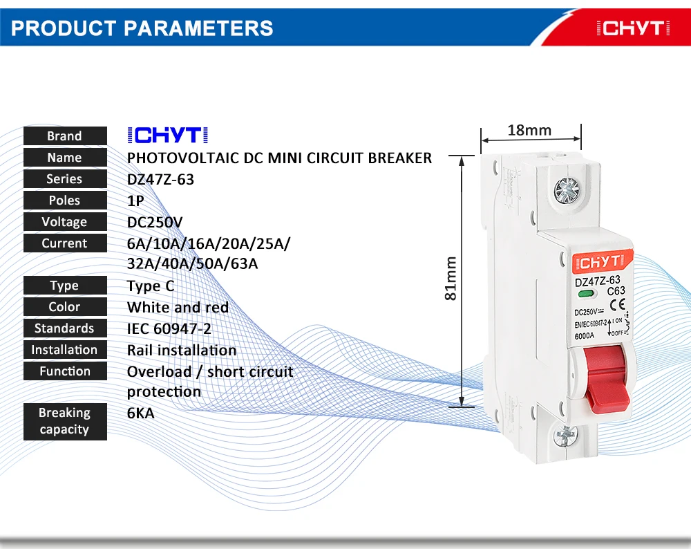 Дополнительные протекторы DZ47Z-63 DC MCB предназначены для обеспечения защиты от перегрузки по току в приборах или электрическом оборудовании, где защита от цепи уже предусмотрена или не требуется. Устройства предназначены для применения цепи управления постоянного тока.