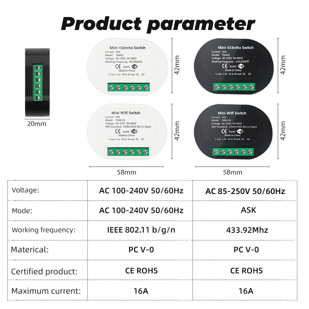 Напряжение: 85 ~ 250 В, 50-60 Гц Ток: 16A/10A (подробнее см. Параметры продукта) Материал: Поликарбонат огнестойкий V0 Размер: 59x42x20мм Беспроводной метод: ZigBee 3,0 Приложение: Smart life/TUYA Характеристики: Цвет: белый Выход: AC 100-240V 50/60Hz Вход: AC 100-240V 50/60Hz Wi-Fi:IEEE 802.11b/g/n Материал: PCV-0 Сертифицированный продукт: CE ROHS Максимальный ток: 16А
