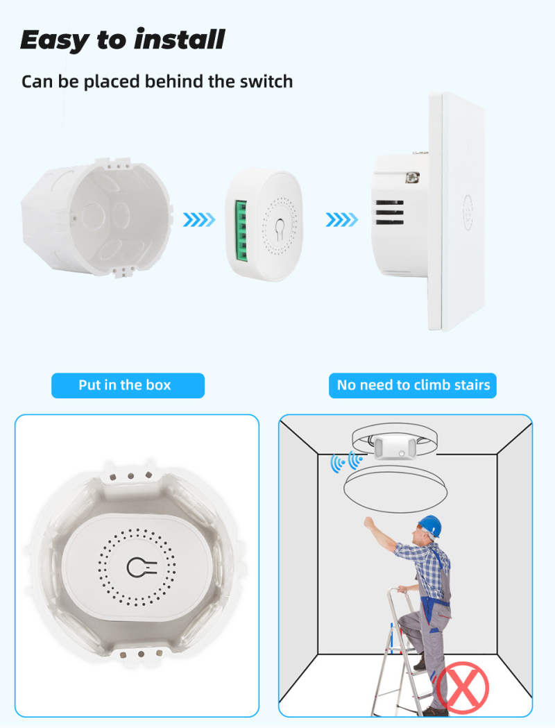 【Превратите неумные приборы или оборудование в smart】 【Поддержка двустороннего управления 】 может использоваться на двух переключателях для управления лампочкой на светильник. 【Управление мобильным приложением 】 переключатель управления, время, обратный отсчет и другие функции устройства через мобильный телефон 【 Голосовое управление 】поддержка голосовых помощников, таких как Alexa, Google Home и т. д., для реализации таких функций, как переключатели; 【 Пульт дистанционного управления 】 он может осуществить дистанционное управление светильник на мобильный телефон, независимо от того, где вы находитесь на земле, до тех пор, пока ваш мобильный телефон может подключиться к сети, вы можете управлять им; 【 Сетевые технологии 】один мобильный телефон может управлять несколькими переключателями, и один переключатель может управляться несколькими мобильными телефонами одновременно; 【Групповое управление 】 огни могут быть сгруппированы для достижения унифицированного управления (одновременное переключение, синхронизация и т. д.); 【Интернет всех вещей 】 через настройки, он может быть связан с другими интеллектуальными сценами, чтобы сделать жизнь умнее; 【Общий доступ и безопасность 】 основная учетная запись может быть предоставлена другим членам семьи, а функции и настройки полностью сохранены и скопированы; Безопасность: После того, как лампа добавится к основной учетной записи, лампа будет и другие пользователи больше не могут найти и добавить; Ее необходимо активно делиться, прежде чем другие могут использовать ее. 【Шлюз требует 】вам нужен концентратор для подключения устройства к Интернету. Устройство отправляет информацию на шлюз, и Шлюз передает информацию на мобильный телефон.