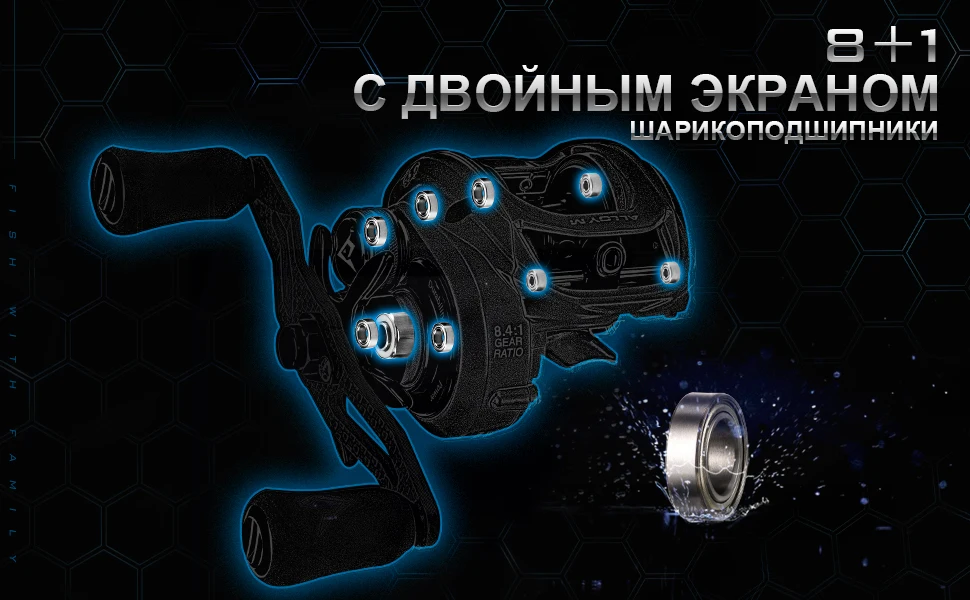 Плавного хода:Оснащен 8 двойными экранированными шариковыми подшипниками высокого качества и 1 роликовым подшипником, который обеспечивает ультра гладкое извлечение даже при тяжелой нагрузке. Высокоскоростные подшипники NMB обеспечивают максимальное расстояние литья.