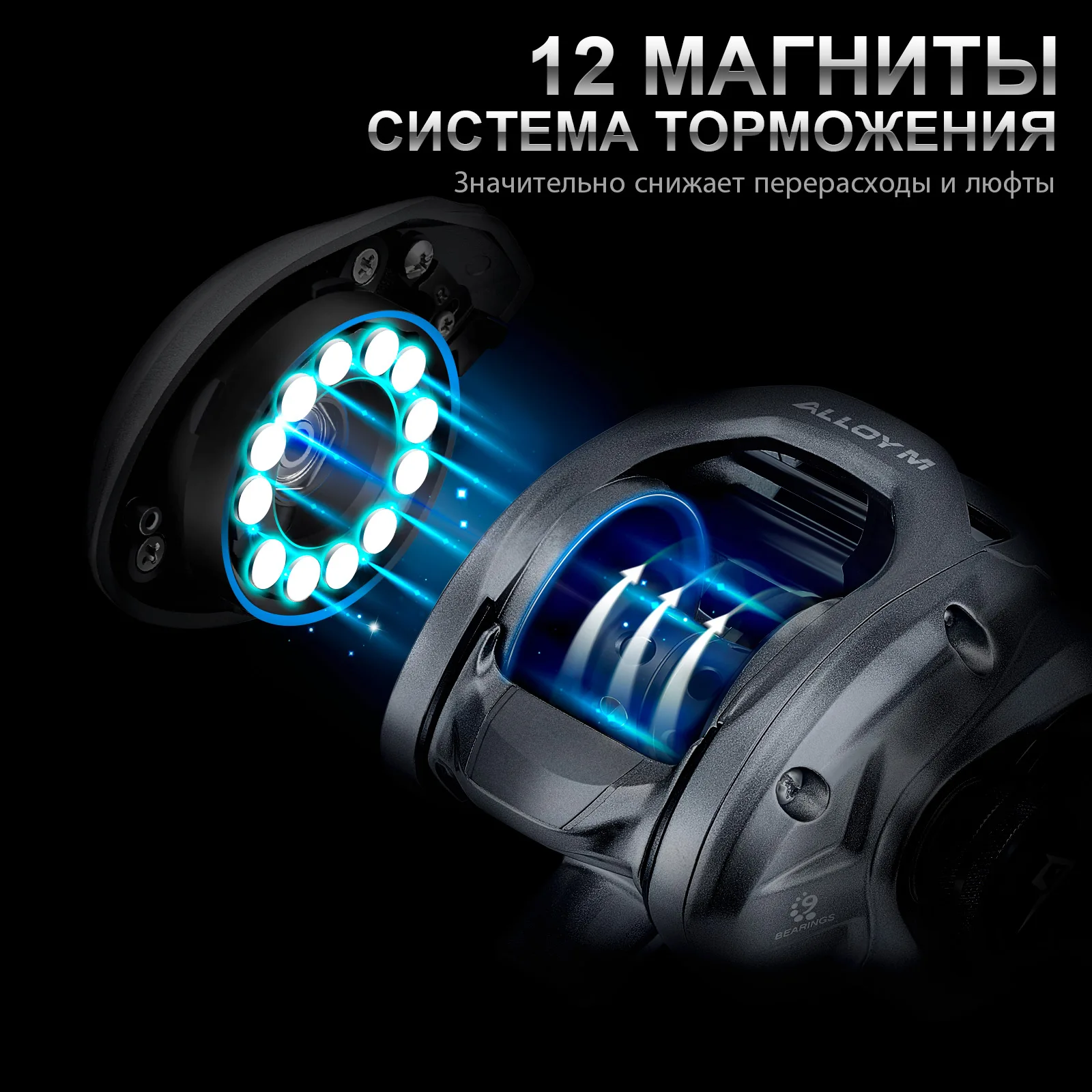 Точная Магнитная Тормозная система:Благодаря точному тонко настроенному магнитномуТормозная система с 12 магнитами, Которая обеспечивает быструю регулировку на лету, чтобы избежать обратной ресницы, независимо от условий, с которыми вы сталкиваетесь. Меньше ресниц означает больше времени на литье и больше рыбы в лодке.