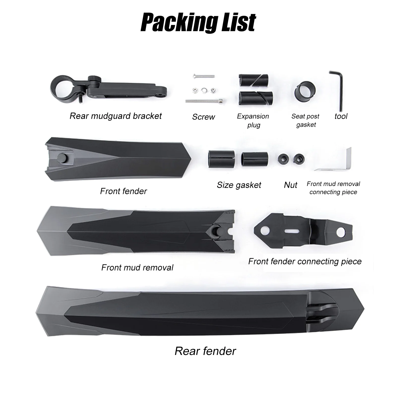 1. Идеальное качество материала: PP пластиковый материал полон прочности, поэтому набор велосипедных крышек сильный.Переднее крыло * 1 + заднее крыло * 1