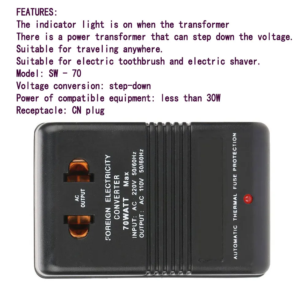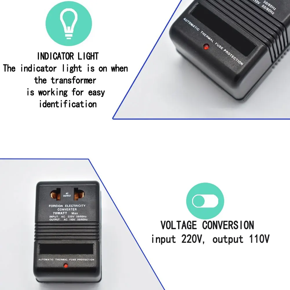 Дорожный адаптер, преобразователь напряжения 220 В до 110 В, понижающий преобразователь 70 Вт, Преобразователь мощности, регулятор электричества
