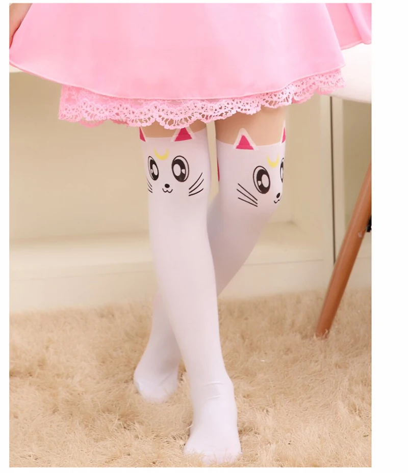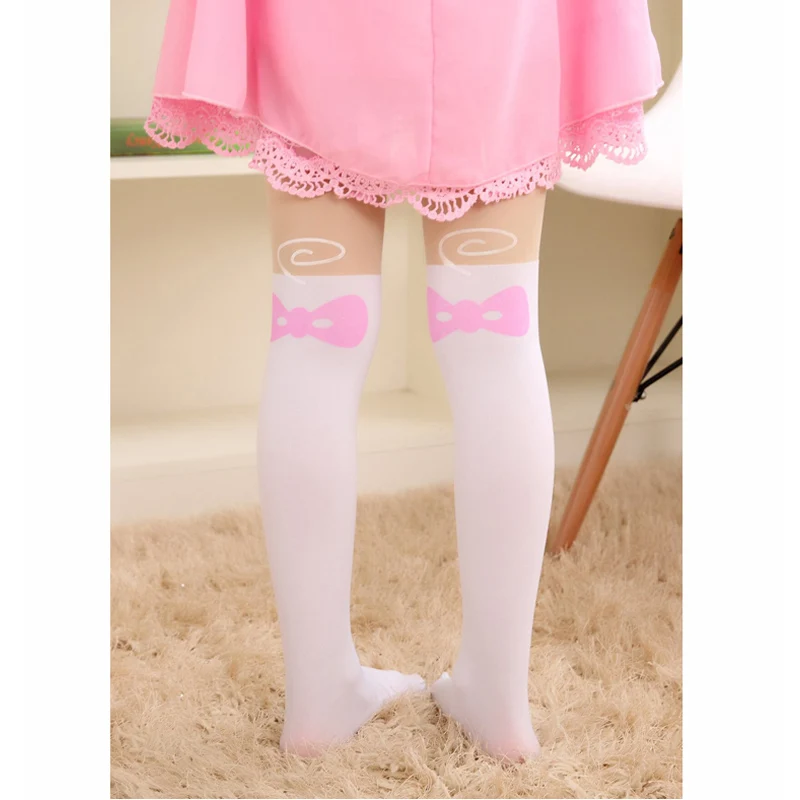 Размер-Размер M для детей ростом 95-120 см;-Размер L для детей ростом 120-140 см;Новинка 2021 года, летние детские тонкие колготки для девочек колготки до колена, бархатные колготки с имитацией татуировки колготки для девочек белые От 3 до 8 лет с рисунком котаФотографии продукта