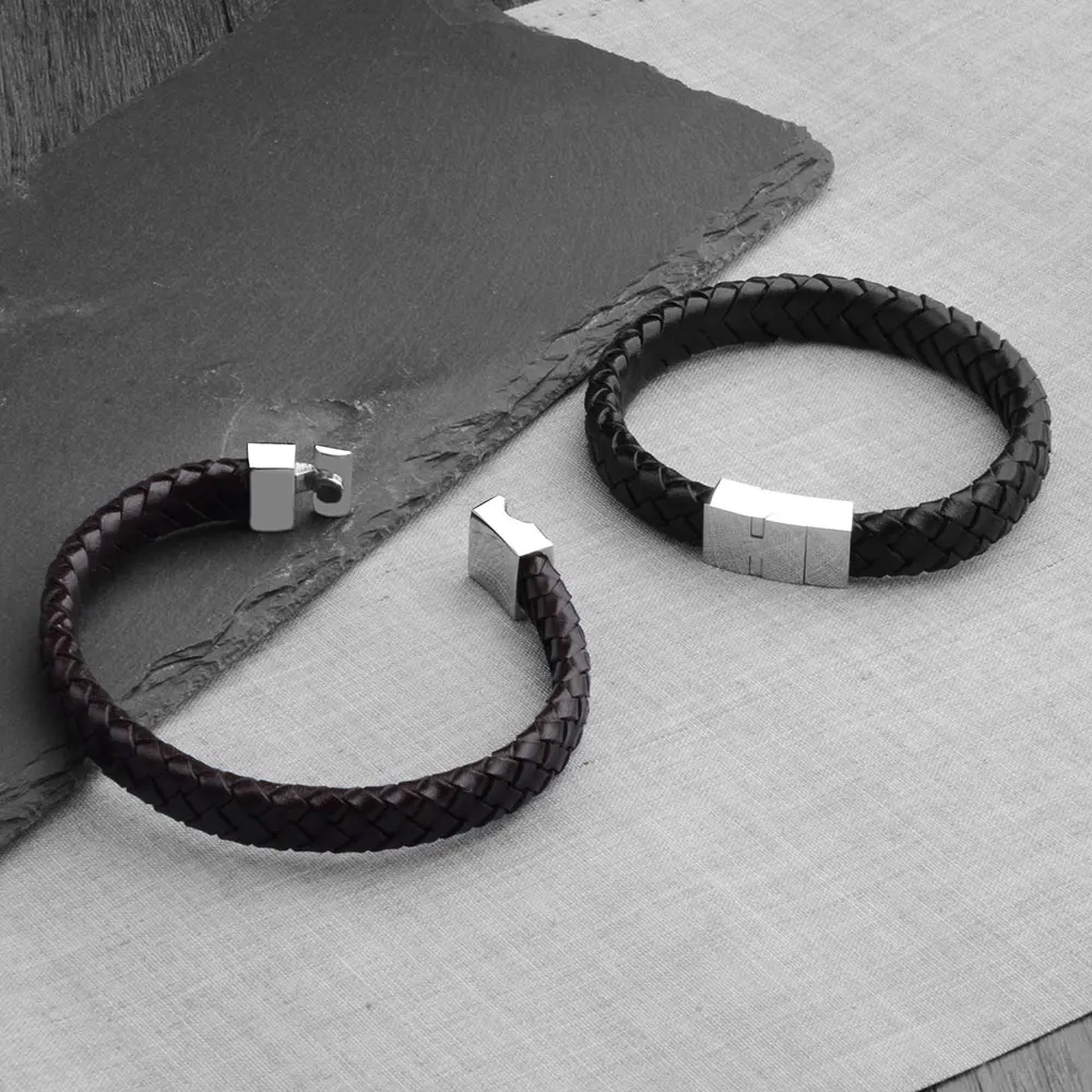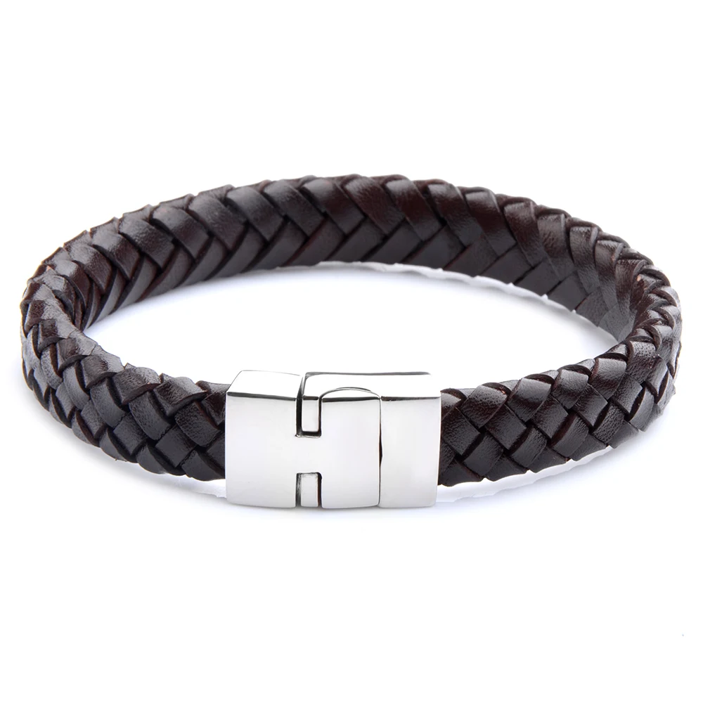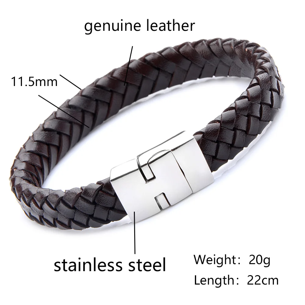 Название:Новый мужской браслет из натуральной кожи, черный коричневый плетеный браслет из веревочки для мужчин, магнитный браслет с застежкой из нержавеющей стали, ювелирные изделия