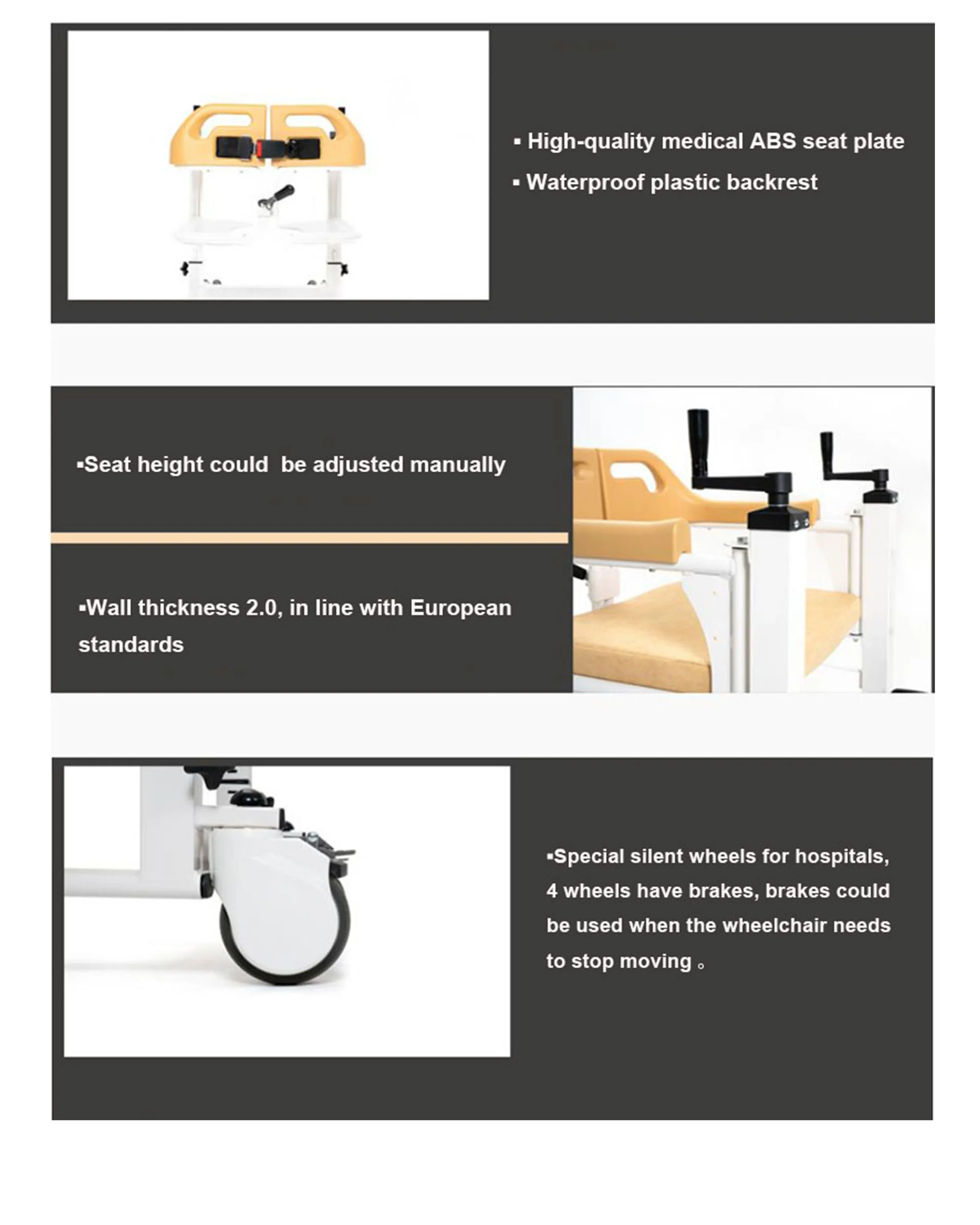 Может использоваться как кресло-туалет, инвалидное кресло, подъемник пациента