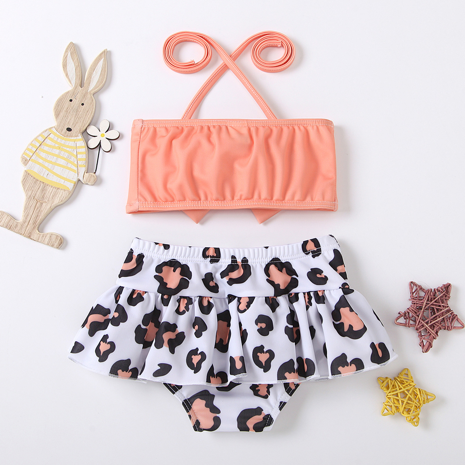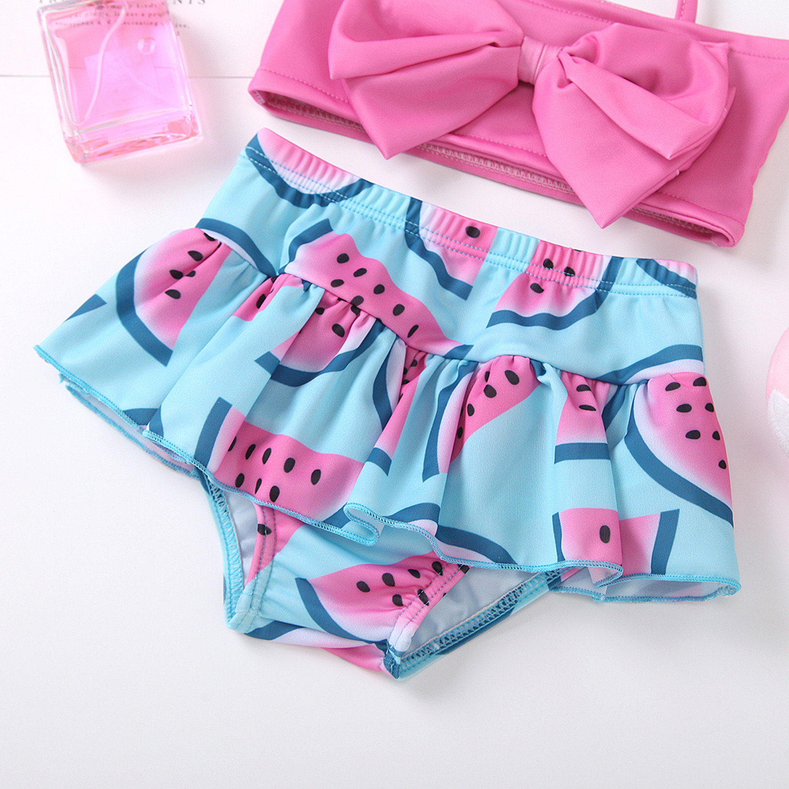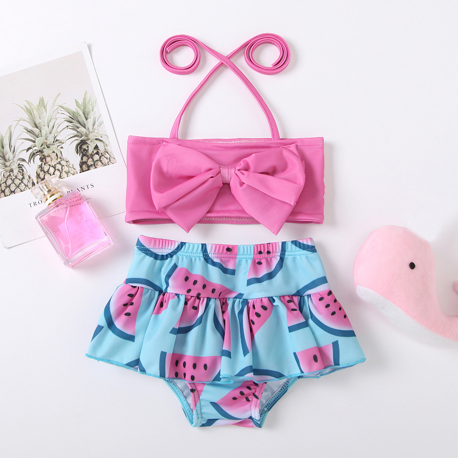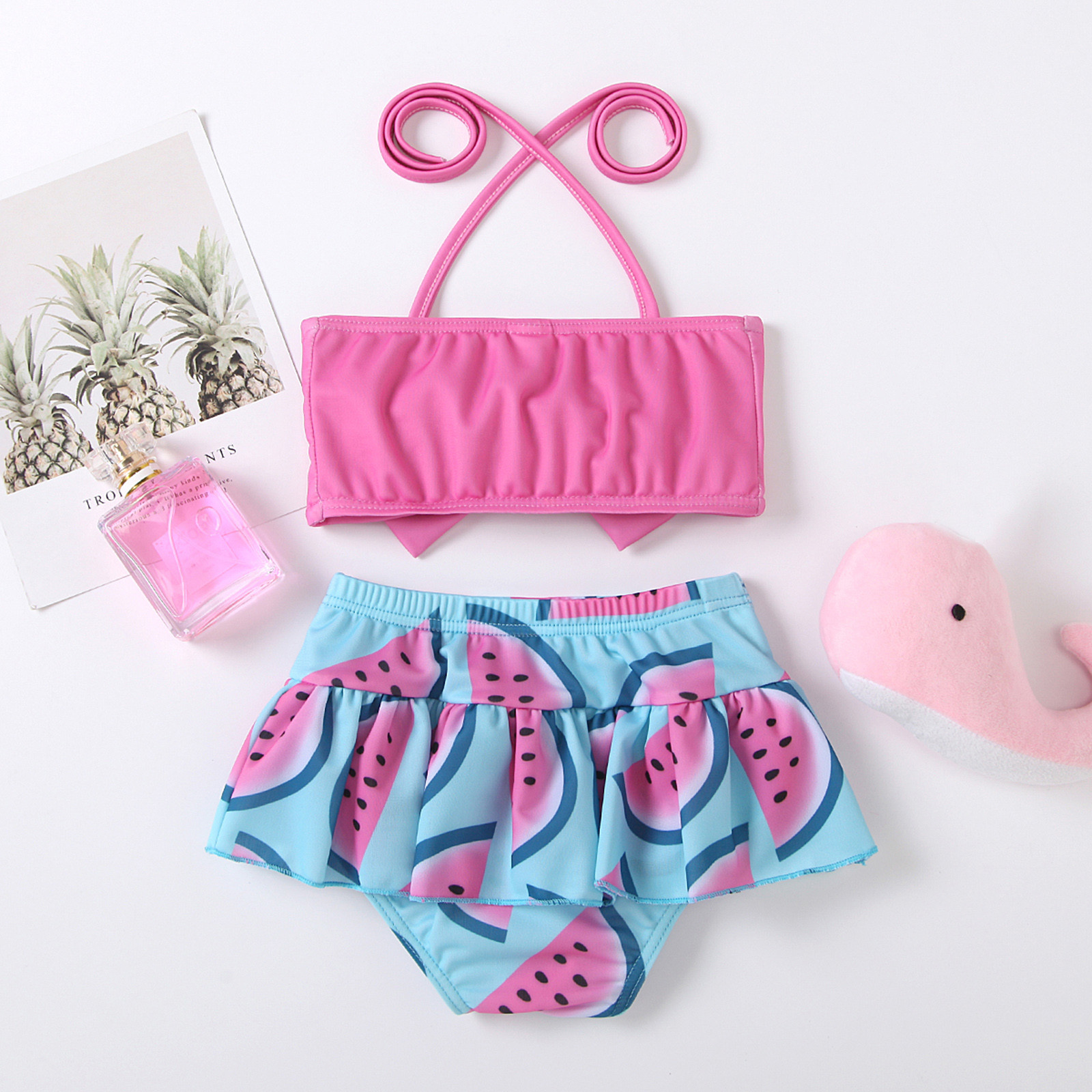 Купальный костюм для маленьких девочек с рисунком арбуза и леопарда; Комплект из двух предметов; Купальный костюм
