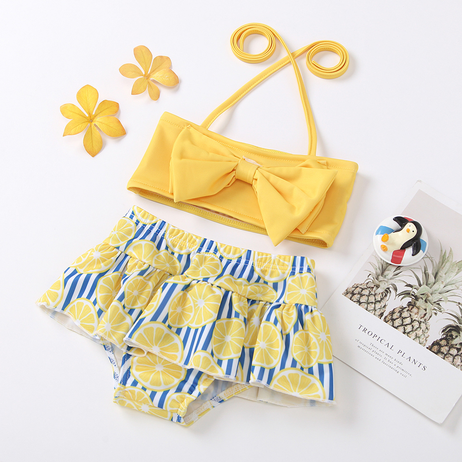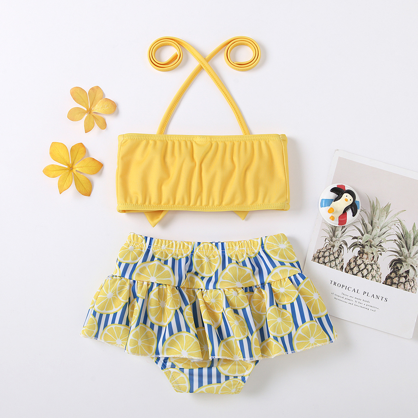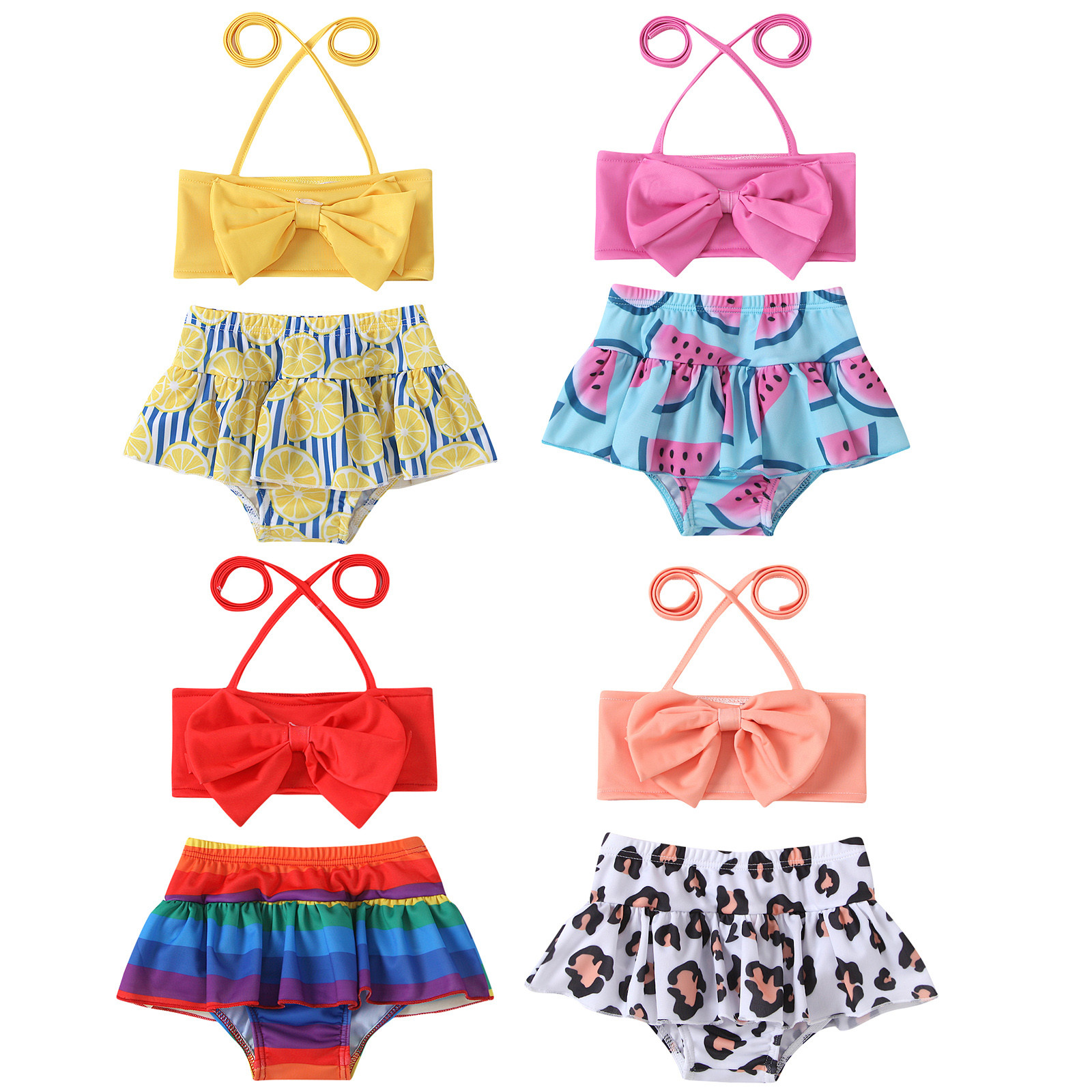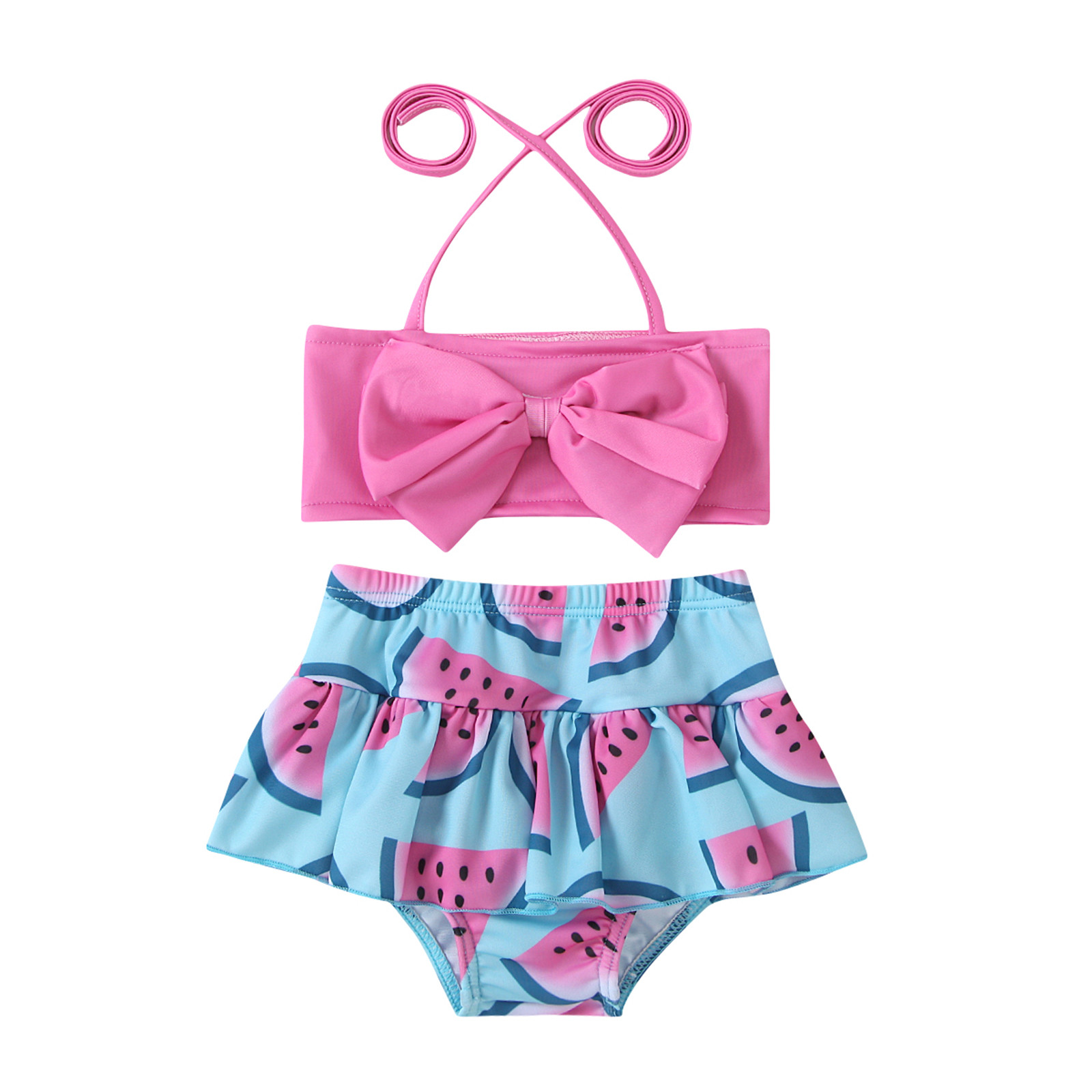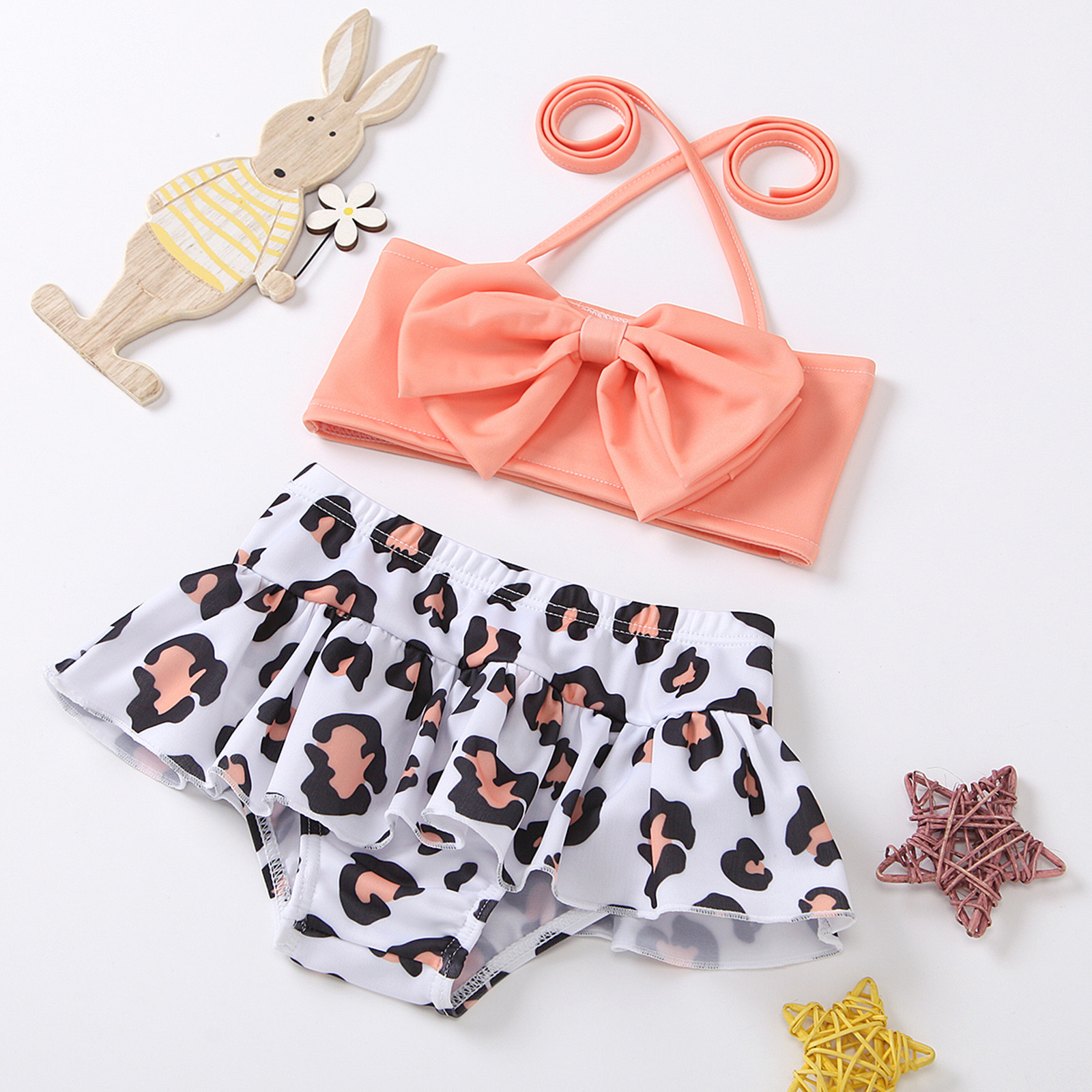 Купальный костюм для маленьких девочек с рисунком арбуза и леопарда; Комплект из двух предметов; Купальный костюм