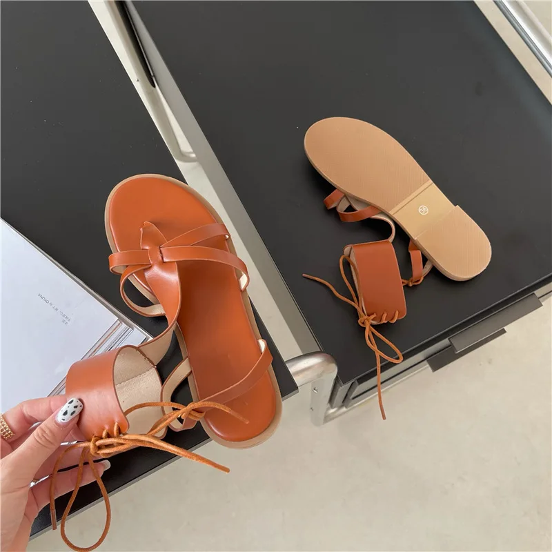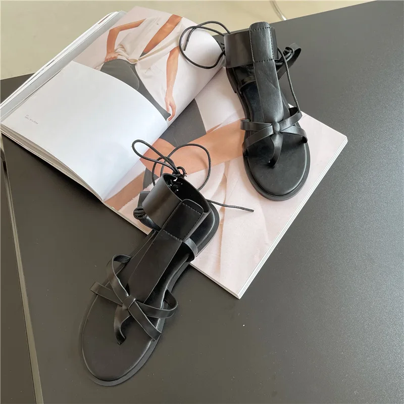 Повседневные сандалии-гладиаторы; Женская летняя обувь на плоской подошве; Femme