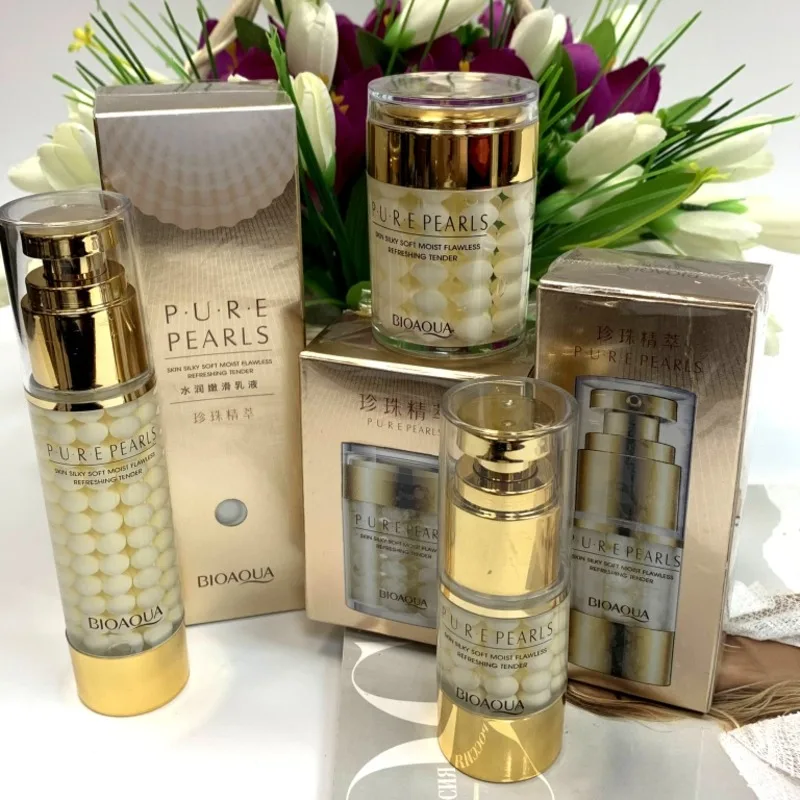 Набор косметики для лица BIOAQUA АНТИ ВОЗРАСТНОЙ С ЭКСТРАКТОМ ЖЕМЧУГА ( сыворотка для лица 4570, крем вокруг глаз 4600, крем для лица 4587)