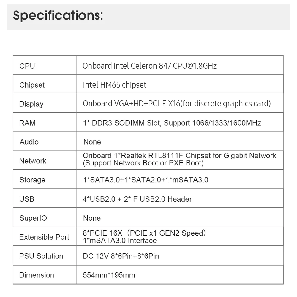 Порт расширения: 8 * PCI-E 16X (скорость PCI-E x1 GEN2), 1 * Интерфейс mSATA3.0
