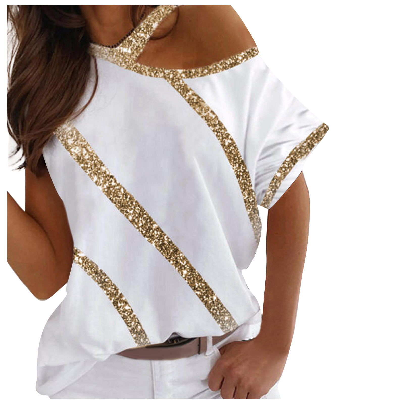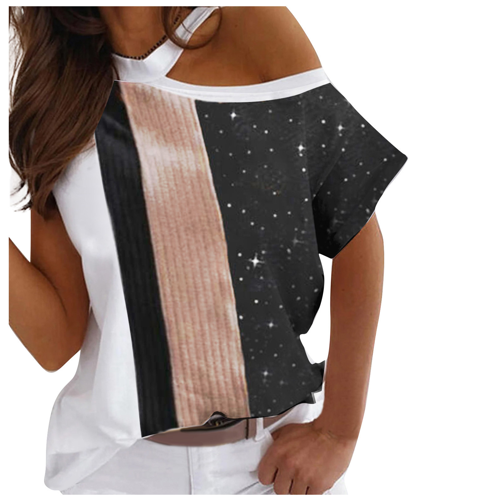 Женская Повседневная футболка с коротким рукавом и принтом на плечах