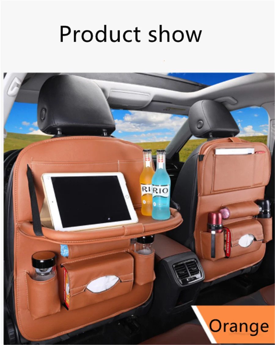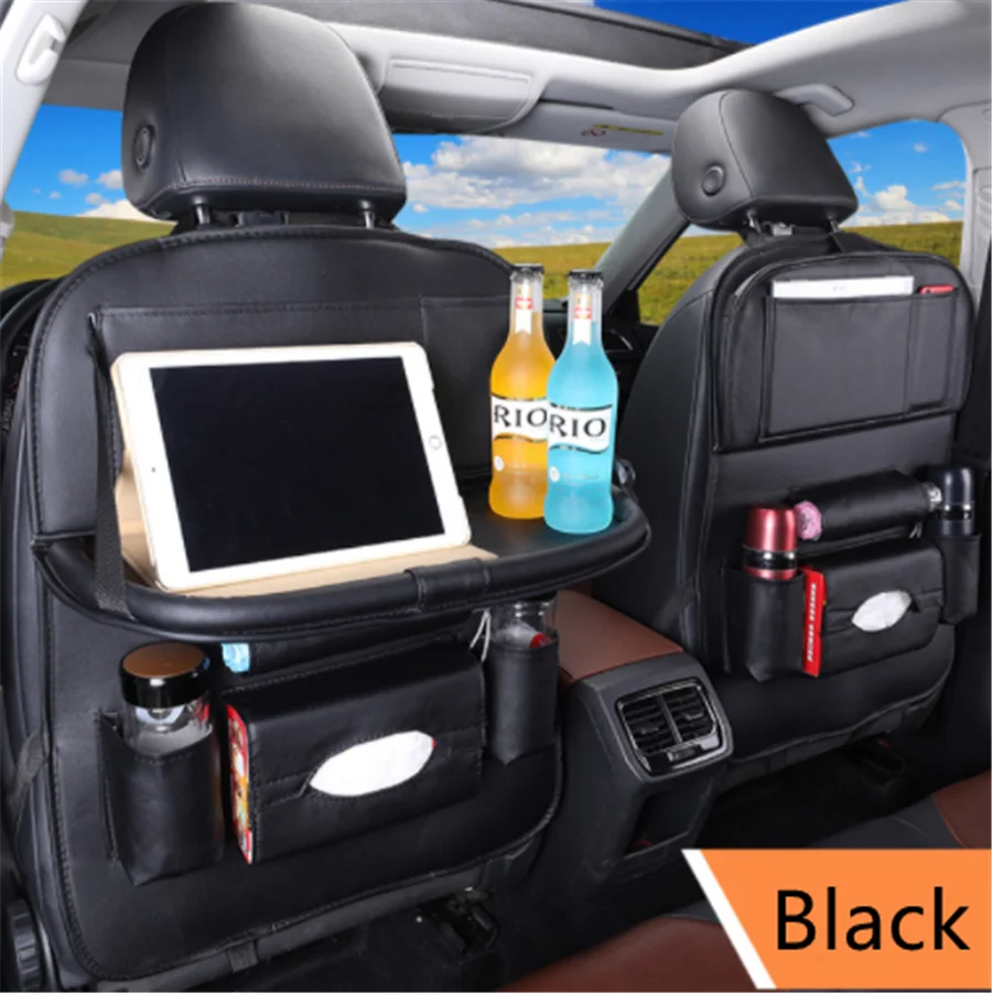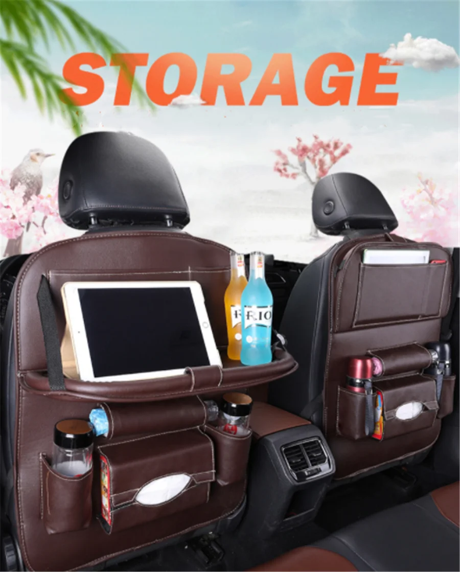 Univeral Car Seat Back Storage Organizer Pu Leather Pad Bag Muti-Pocket Foldable Table Tray Travel Hanging Auto Accessories