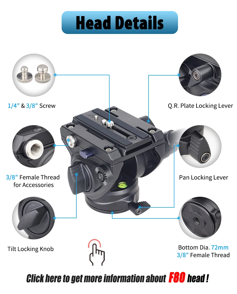 【Усовершенствованная гидравлическая головка оснащена передовым широким диапазоном движения и гладкой гидравлической амортизирующей головкой, которая поддерживает панорамную съемку на 360 °, наклоняясь вверх или вниз.