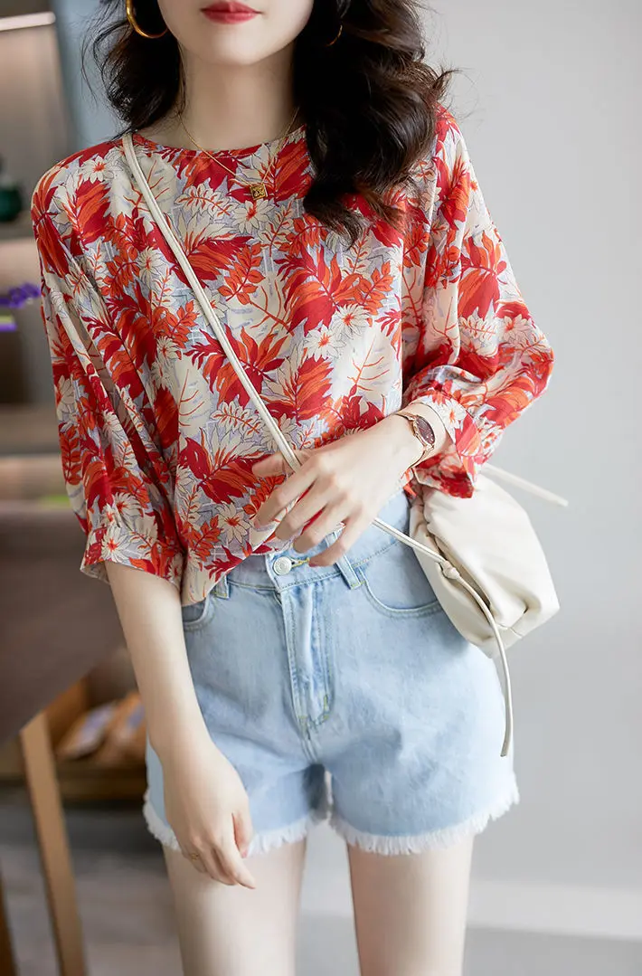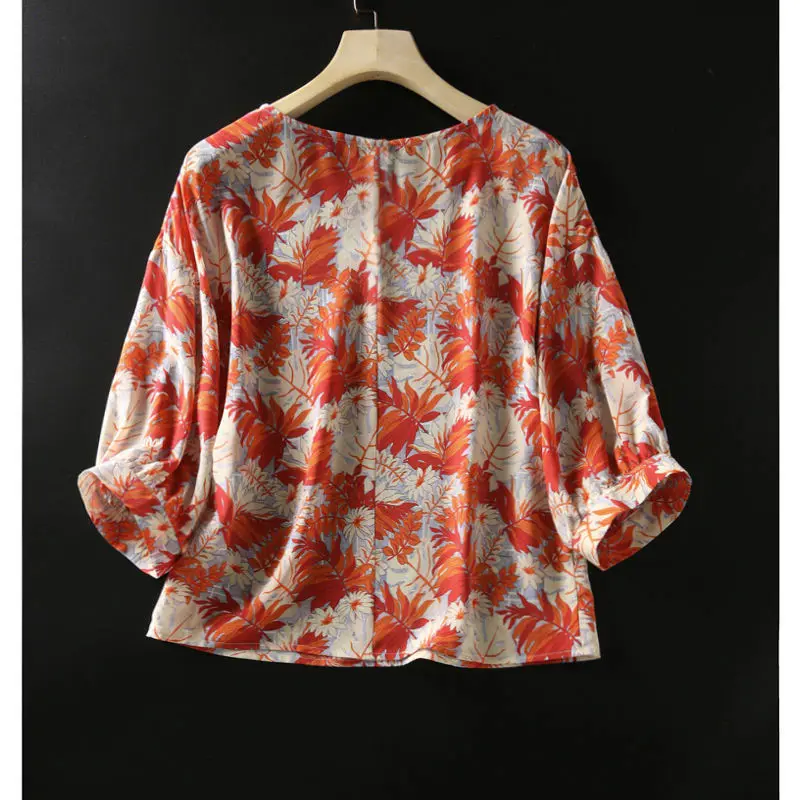 Женские топы с цветочным принтом размера плюс, летние элегантные блузки с пышными рукавами, Женская Повседневная Свободная футболка, новинка 2021, белая