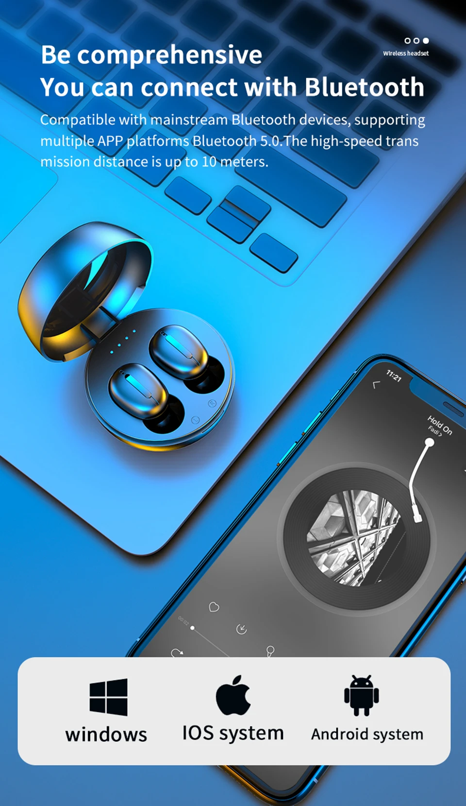 1, Bluetooth V5.0, низкое энергопотребление, полная зарядка работает от 3 до 4 часов