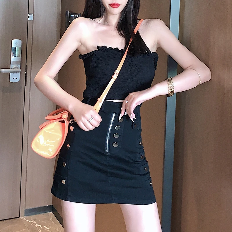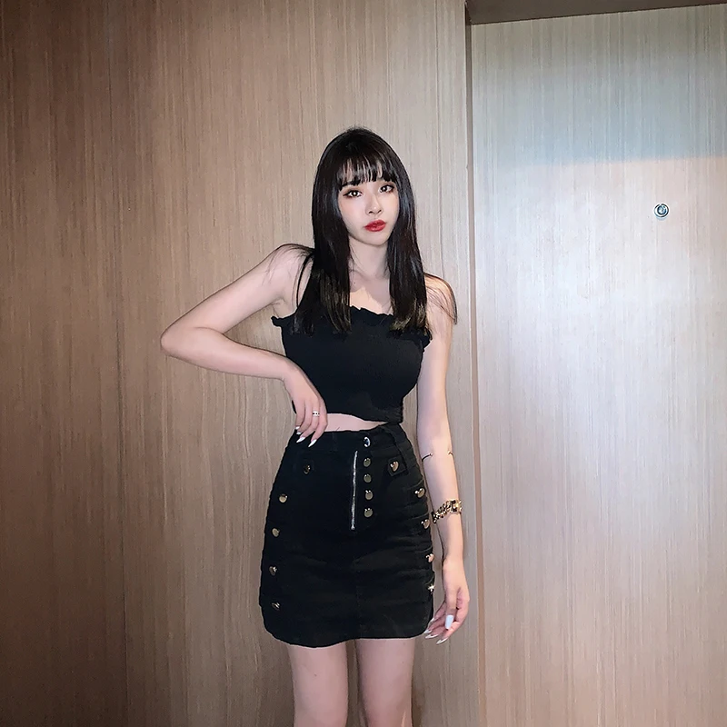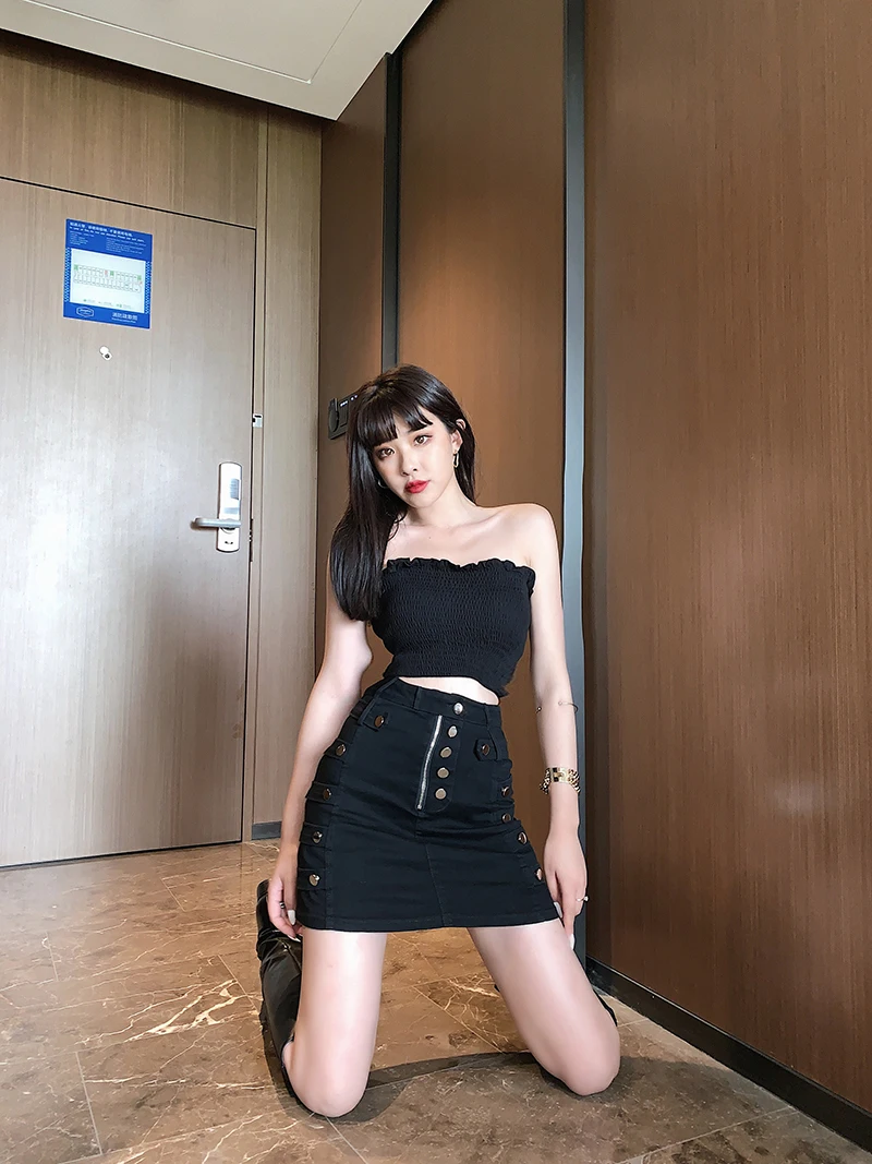 Сексуальная Винтажная летняя джинсовая юбка Женская Корейская уличная хип-хоп джинсовая юбка мини-юбка-карандаш на пуговицах Z363