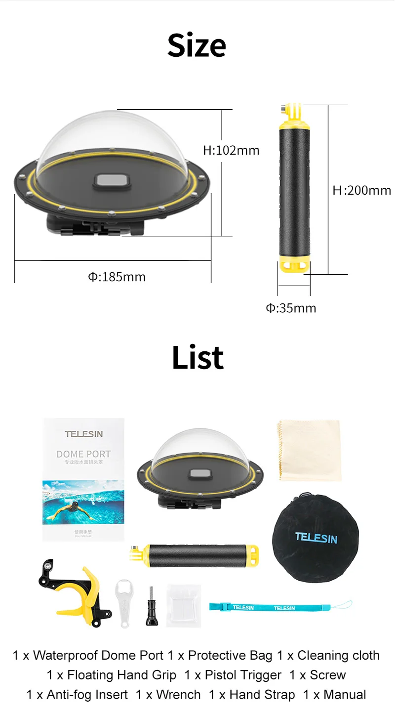 TELESIN 6 ''купол порт 30 м водонепроницаемый чехол Корпус для GoPro Hero 9 8 5 черный 6 7 триггер купольная крышка аксессуары для объектива