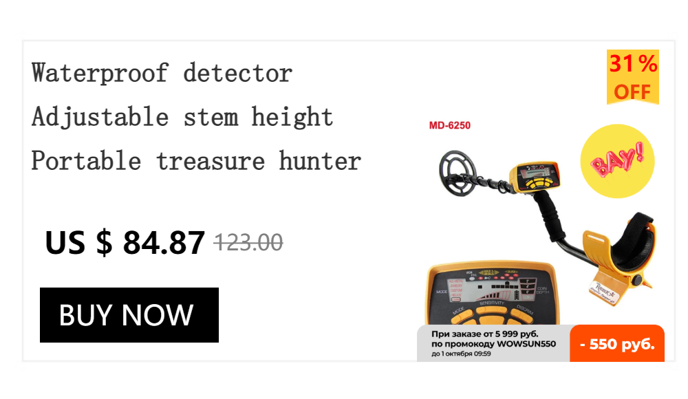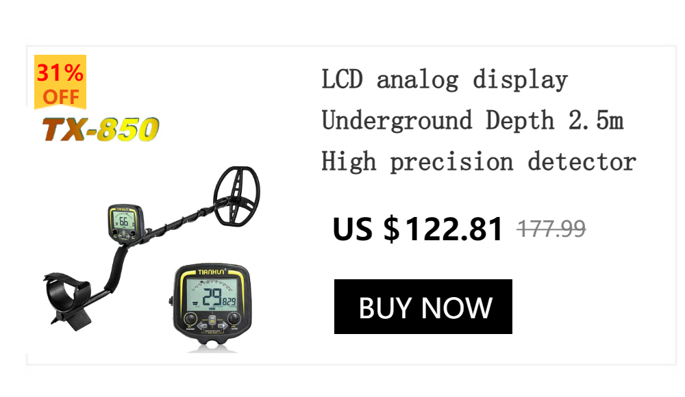 С помощью металлоискателя вы можете охотиться на монеты, реликвии, ювелирные изделия, золото и серебро практически в любом месте, включая лужайки, снег, горы и т. Д. Детектор универсален и прост в использовании. Особенности: Регулируемый стержень позволяет регулировать длину детектора для комфортного использования. Интерфейс ЖК-дисплея более четкий и быстрый для чтения данных. С разъемом для наушников, позволяет подключать стерео наушники и работать без проблем. Благодаря захвату и локоть, которые позволяют удобно носить с собой и управлять вашим детектором, чтобы убедиться, что этот детектор прост для людей разных размеров, возрастов. Подходит для поиска и тестирования металлических предметов, золотых и серебряных ювелирных изделий, монет, реликвий и т. д. независимо от того, являетесь ли вы начинающим охотником за сокровищами или опытным любителем обнаружения металла, вы можете легко использовать его. Характеристики: Основной материал: пластик Цвет: черный Мощность: 1*6F22 аккумулятор 9 В (не входит в комплект) Частота: 19,23 кГц Ток: режим ожидания 20 мА Напряжение: 7,2-9V Глубина обнаружения: 220 мм Индикация обнаружения: аналоговый ЖК-дисплей, звуковой индикатор Управление: выключатель питания Чувствительность: регулируемая Регулируемая высота удлинительной алюминиевой трубки: 640-870 мм Применение: тестирование металлического инородного тела сырья, топлива и продуктов питания, обнаружение подземного трубопровода и линии, геологии, исследования, обнаружены похороненные сокровища золота, серебра и металла артефакты, приобретение металлолома промышленности, таможенный и безопасный контроль, детективный поиск, обнаружение поиска Интерпола, Проверка металлических инородных тел при Экспресс-доставке и багаже. Рабочая температура: -15 ~ 45 ℃ / 5 ~ 113 ℉ Температура хранения: -20 ~ 60 ℃ / -4 ~ 140 ℉ Размер изделия: 1340*280*280 мм/52,8*11,0 * 11.0in Вес изделия: 1400 г/3.1lb Размер посылка: 550*230*190 мм/21,7*9,1 * 7.5in Посылка Вес: 1800g / 4.0lb Примечание: Поисковая катушка является водонепроницаемой, но корпус управления не является водонепроницаемым. Посылка: 1 * металлоискатель 1 * Руководство пользователя