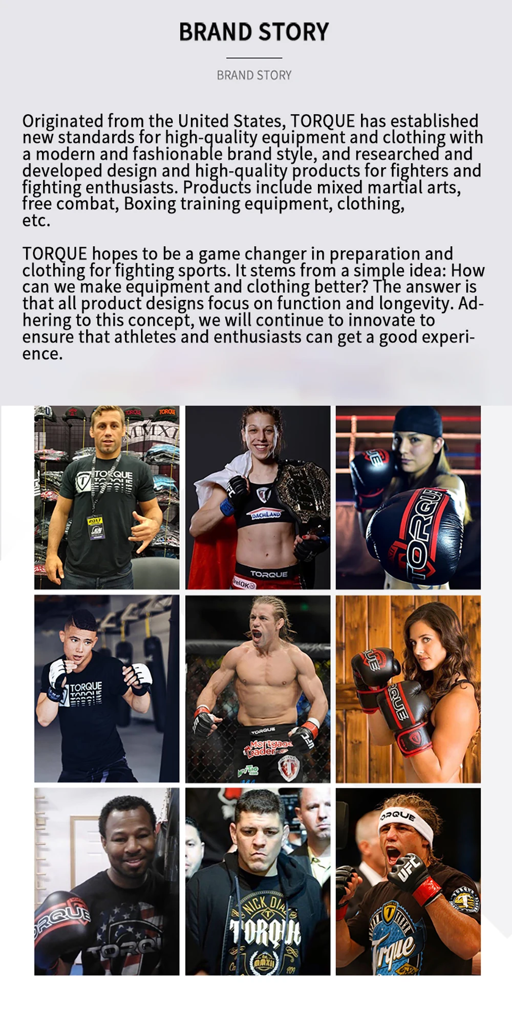 Начиная с Соединенных Штатов, TORQUE установила новые стандарты для высококачественного оборудования и одежды с современным и модным фирменным стилем, И исследованный и разработанный дизайн и высококачественные продукты для бойцов и боевых энтузиастов. Продукты включают в себя Смешанные боевые искусства, бесплатные боевые, боксерские тренажеры, одежду и т. Д.