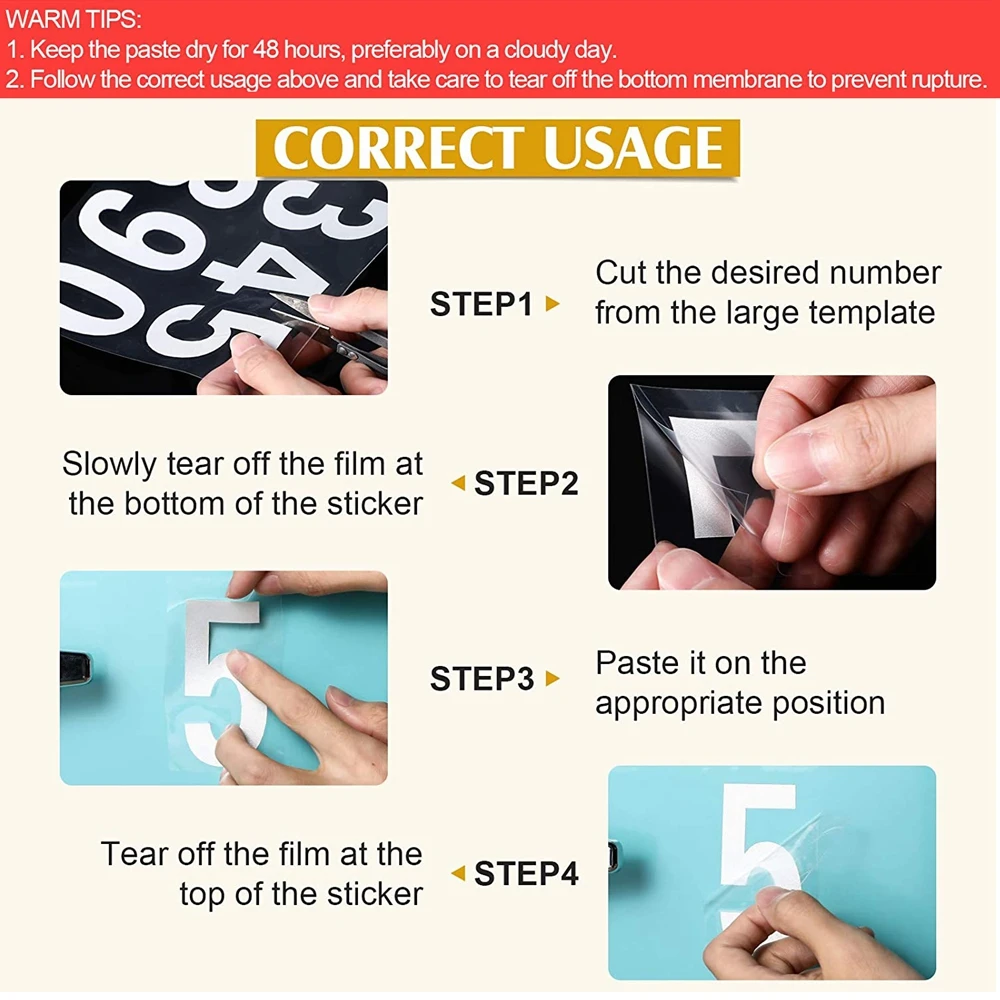 Применение: светоотражающие наклейки с цифрами применимы для почтовых ящиков, дверей, окон, автомобилей, знаков и т. д., что делает их более персонализированными и узнаваемыми.