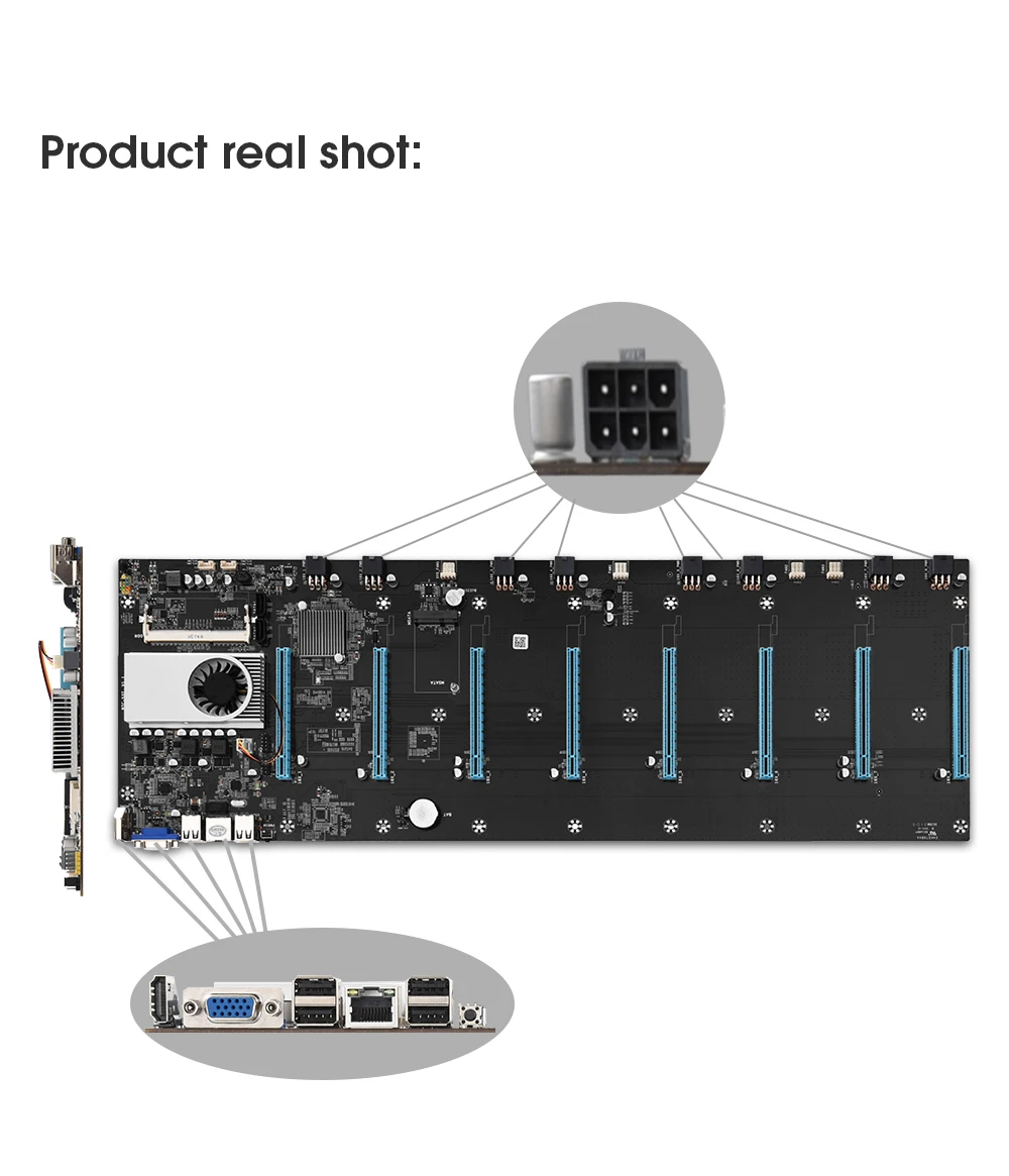 Mining Motherboard with 128GB MSATA SSD 4GB DDR3 1600MHz and 8 Power Cords Has Low Power Consumption and High Computing Power